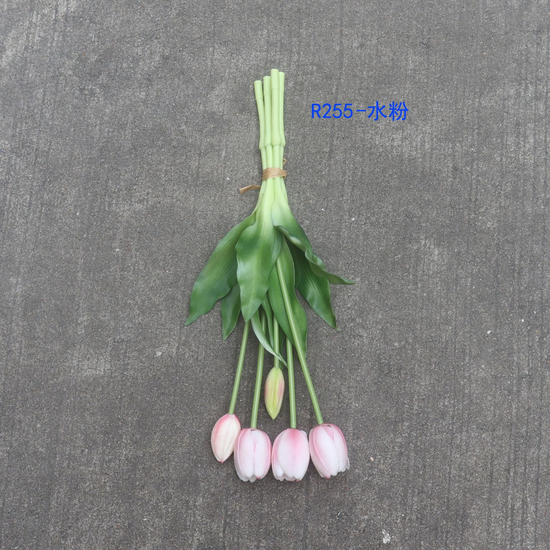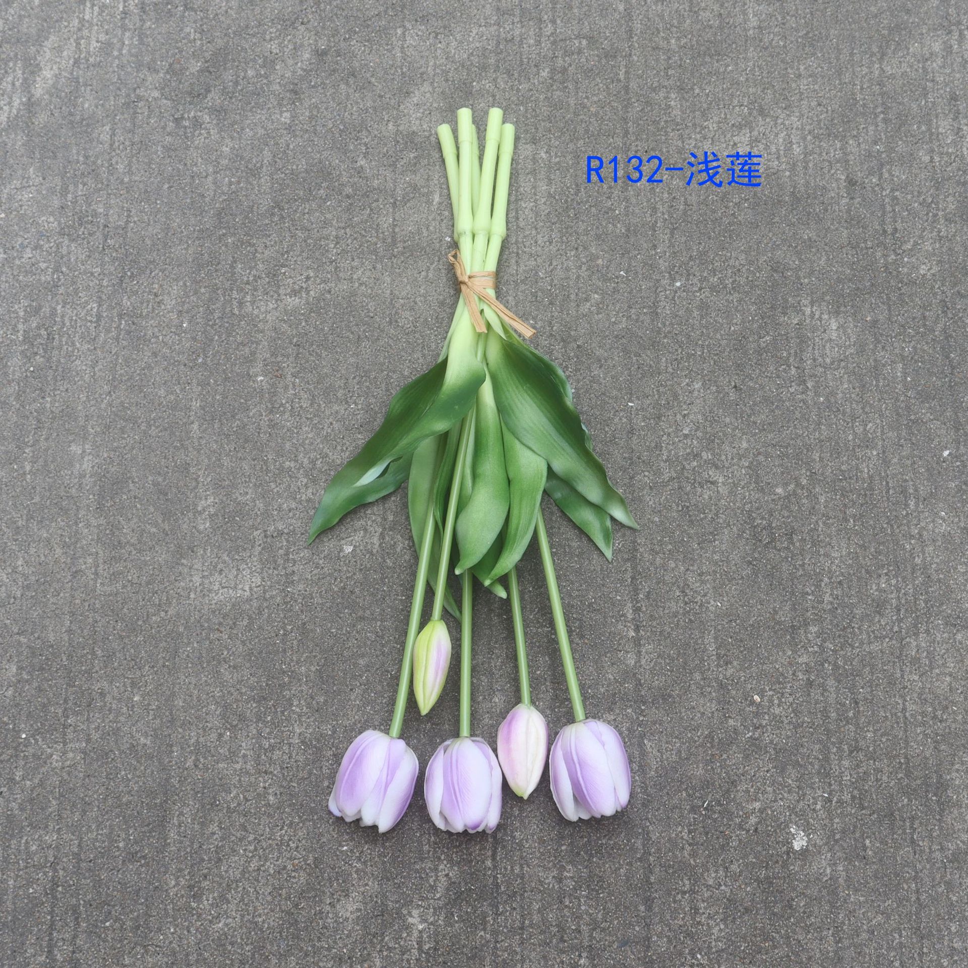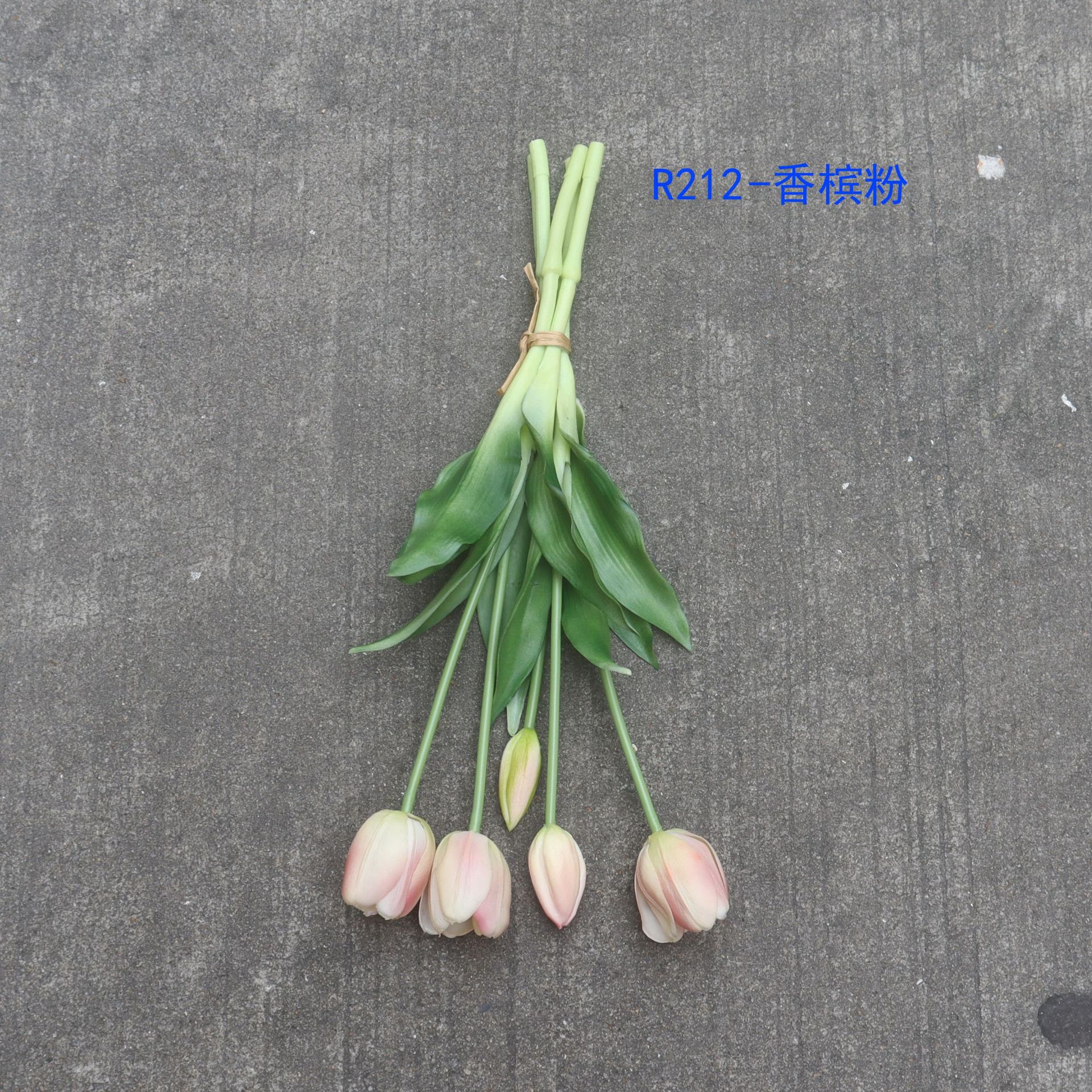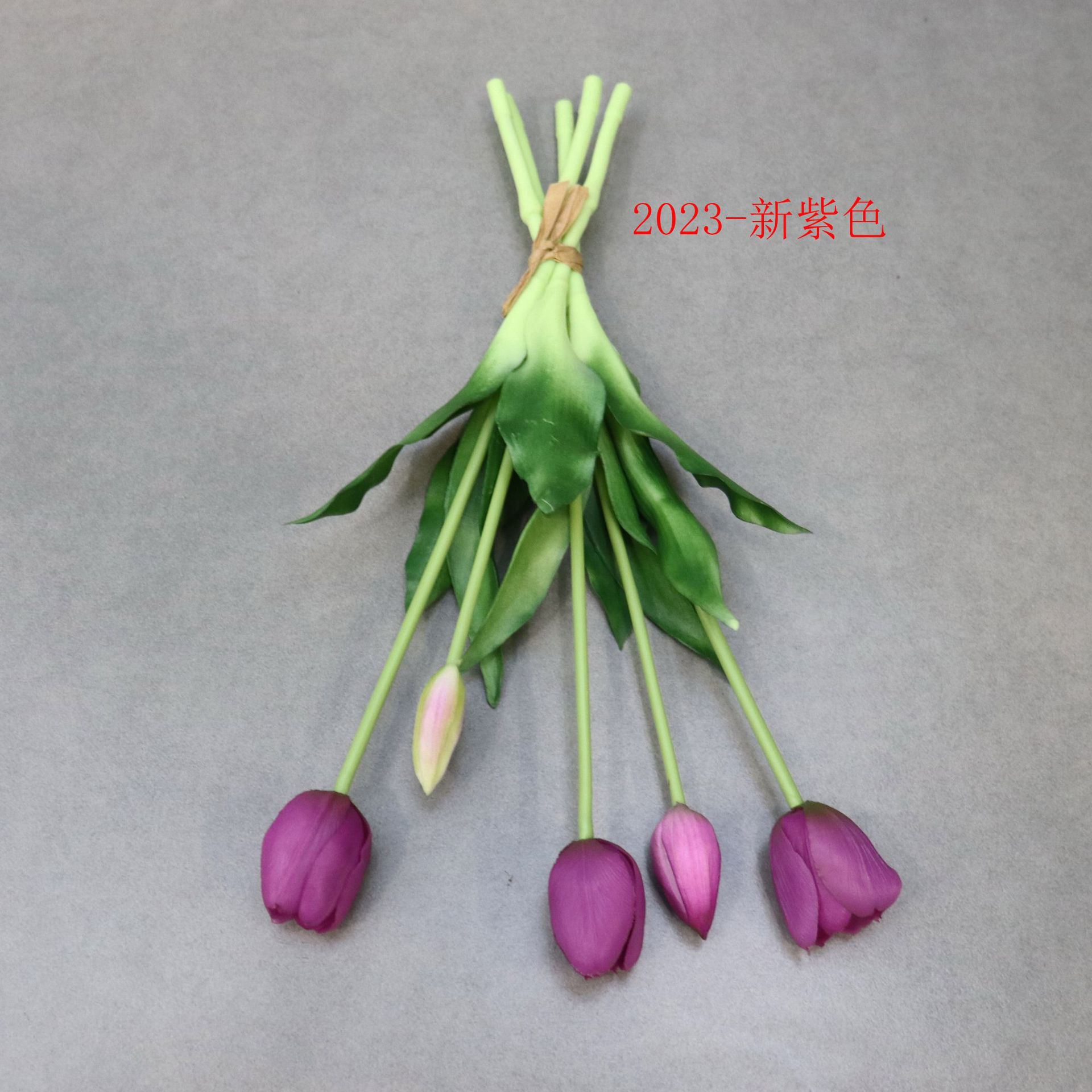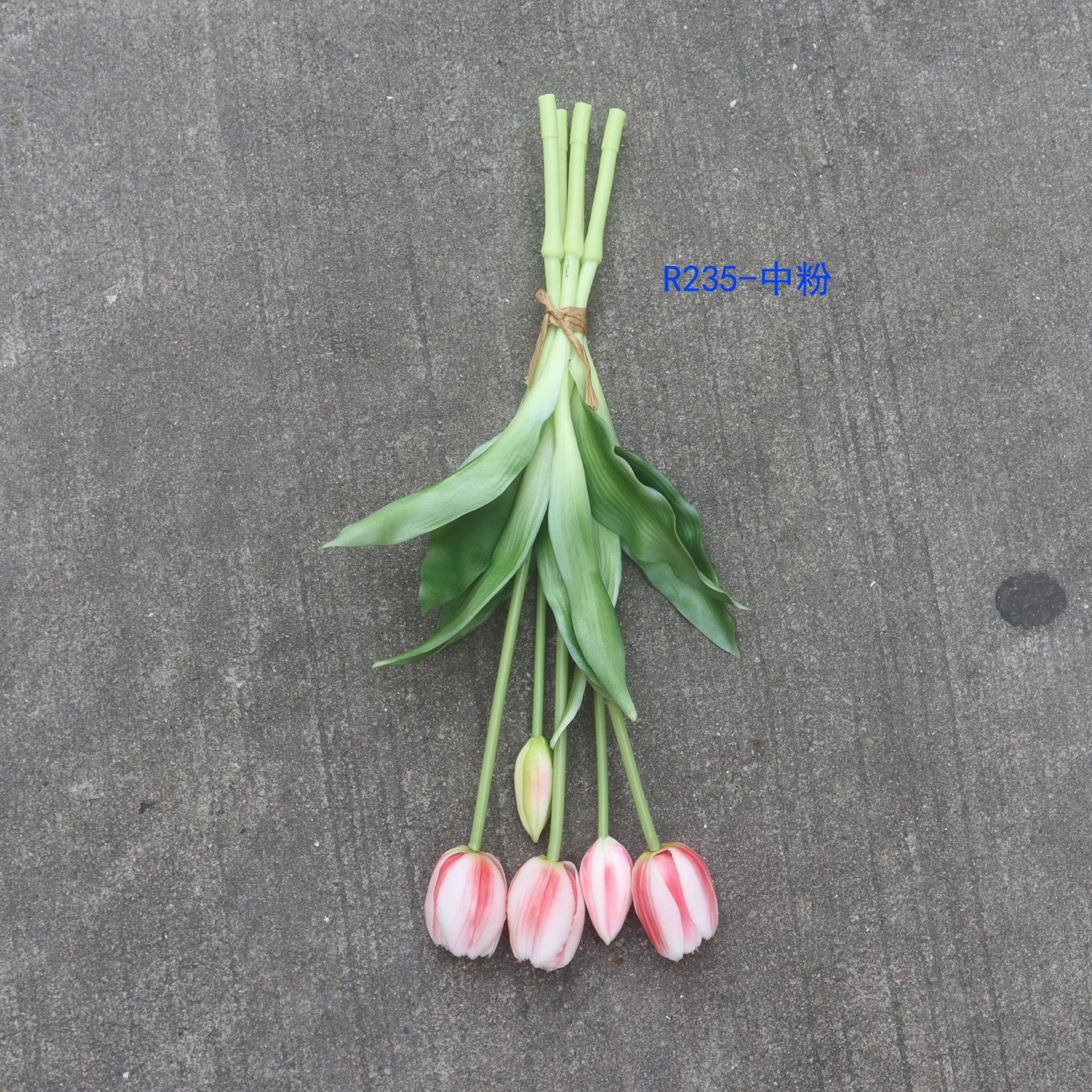 仿真软胶郁金香花束PE乳胶硅胶郁金香花仿真花保湿手感5头郁金香