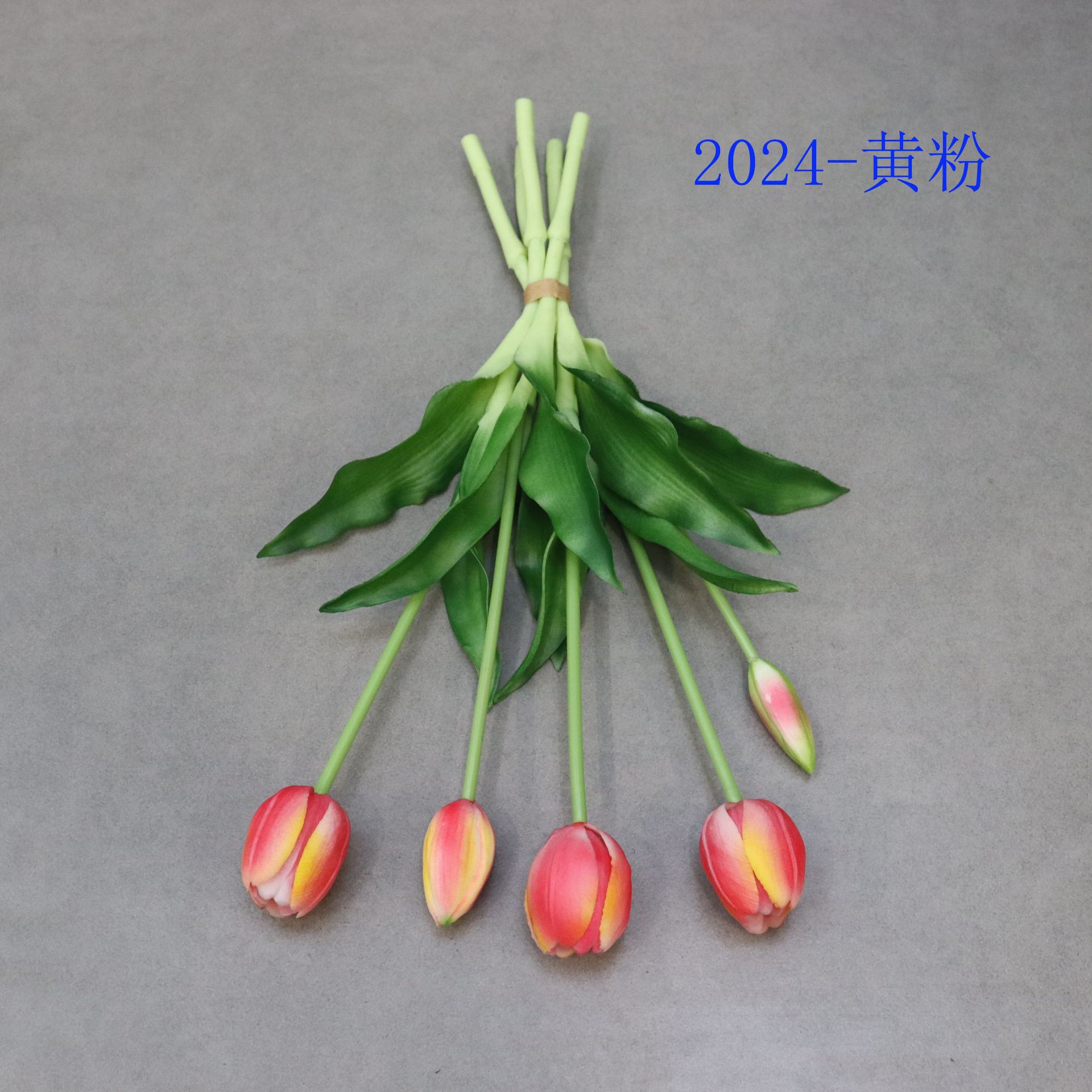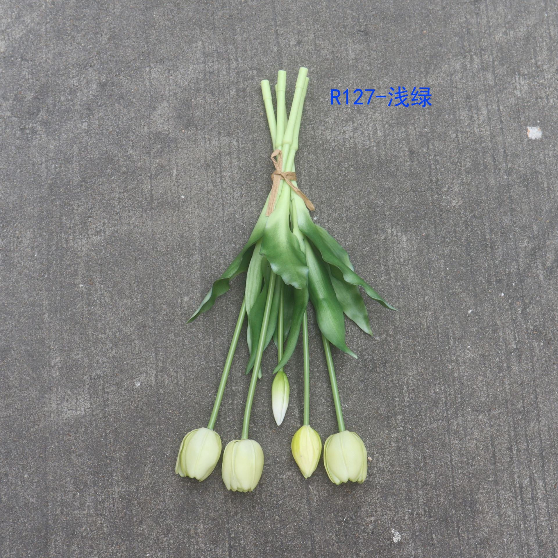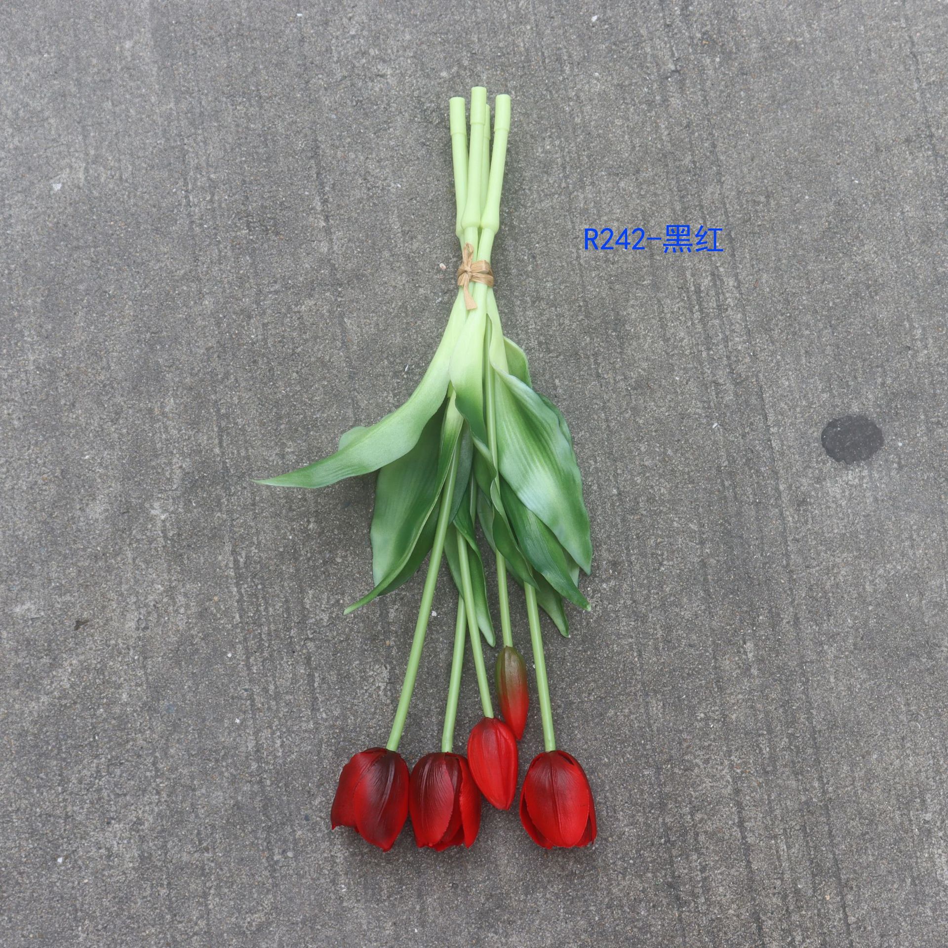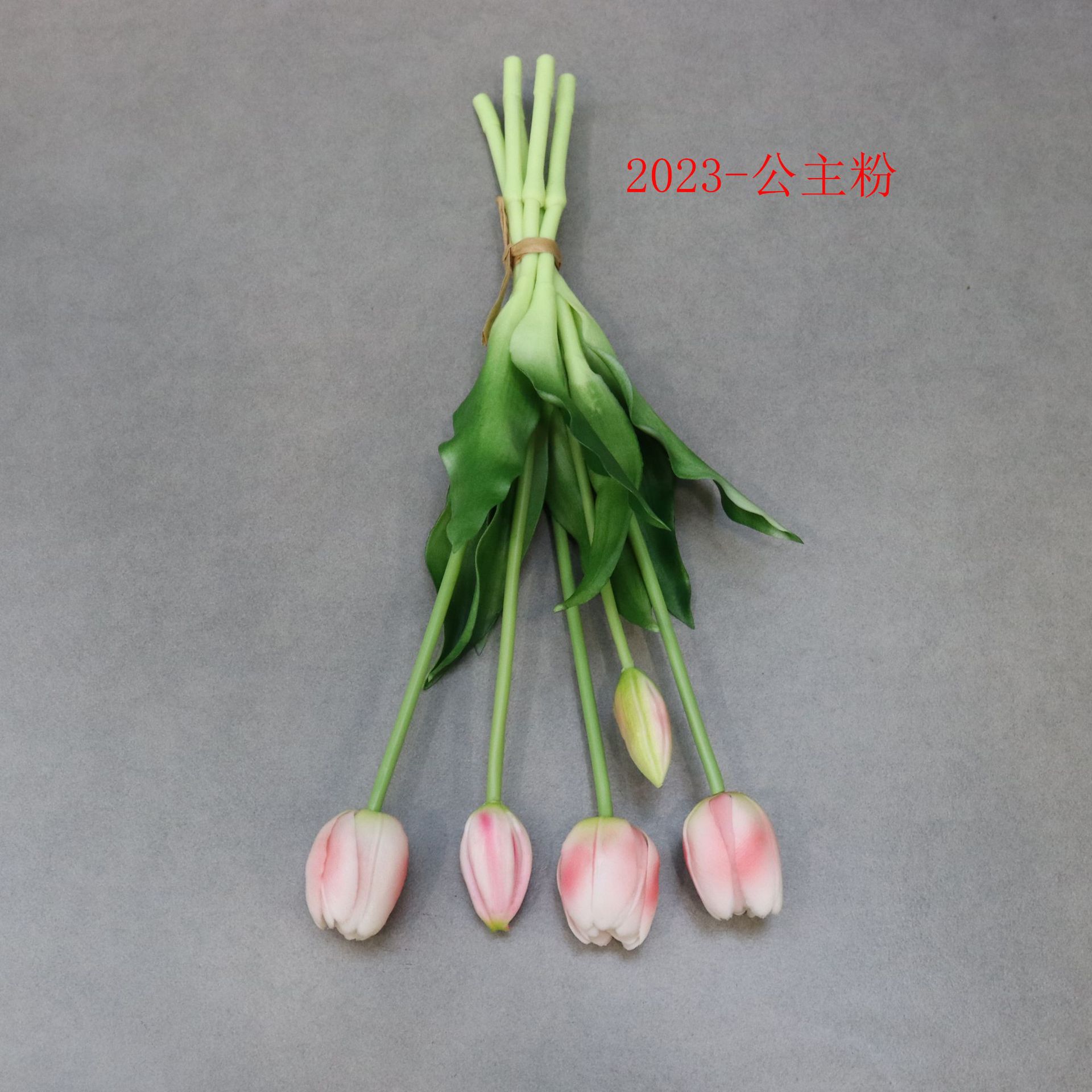 仿真软胶郁金香花束PE乳胶硅胶郁金香花仿真花保湿手感5头郁金香