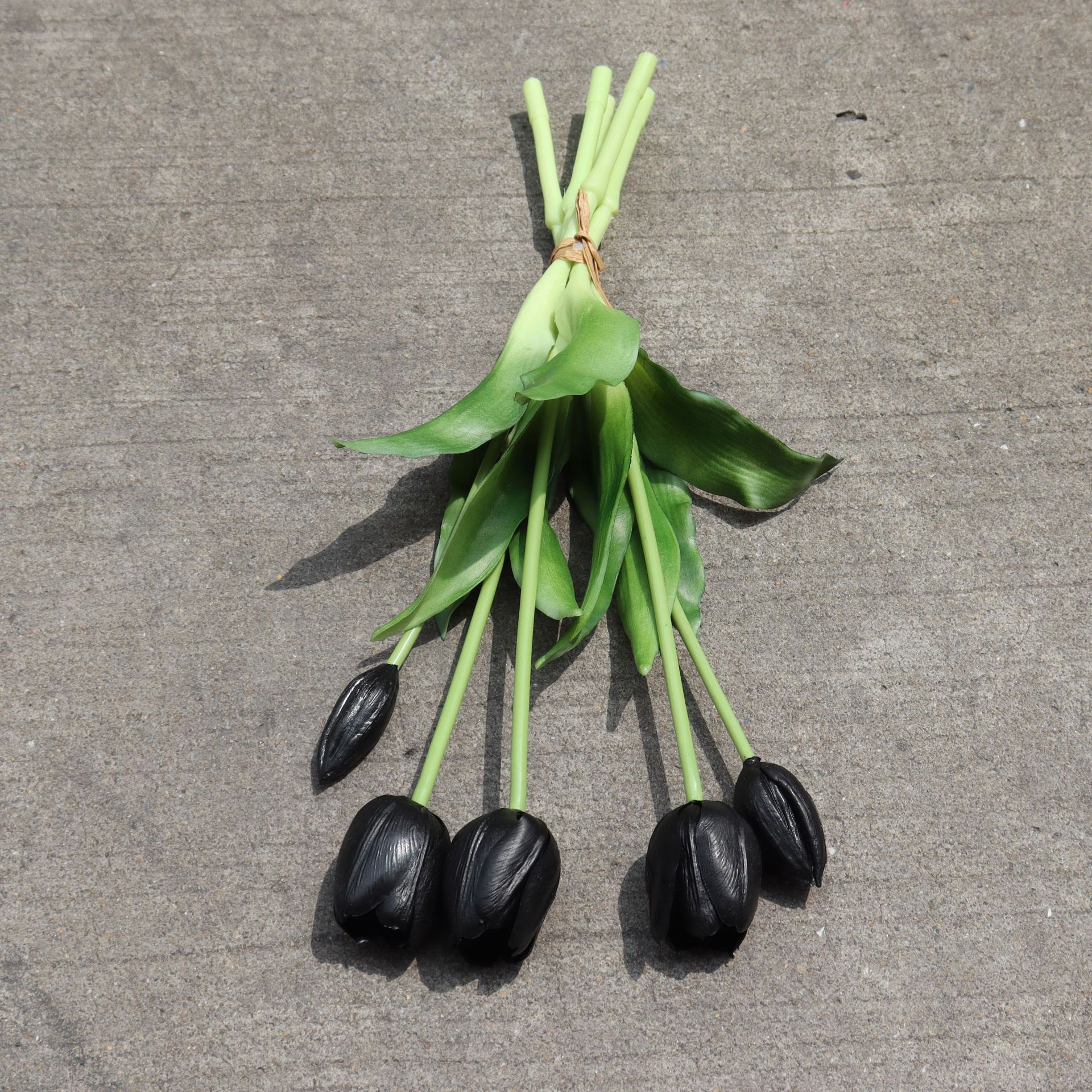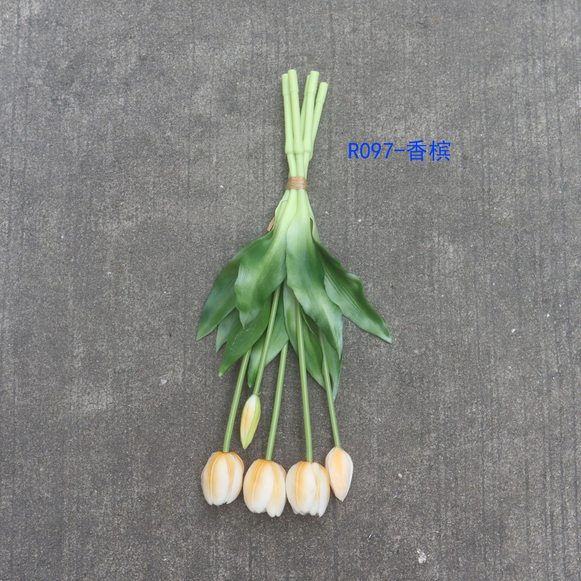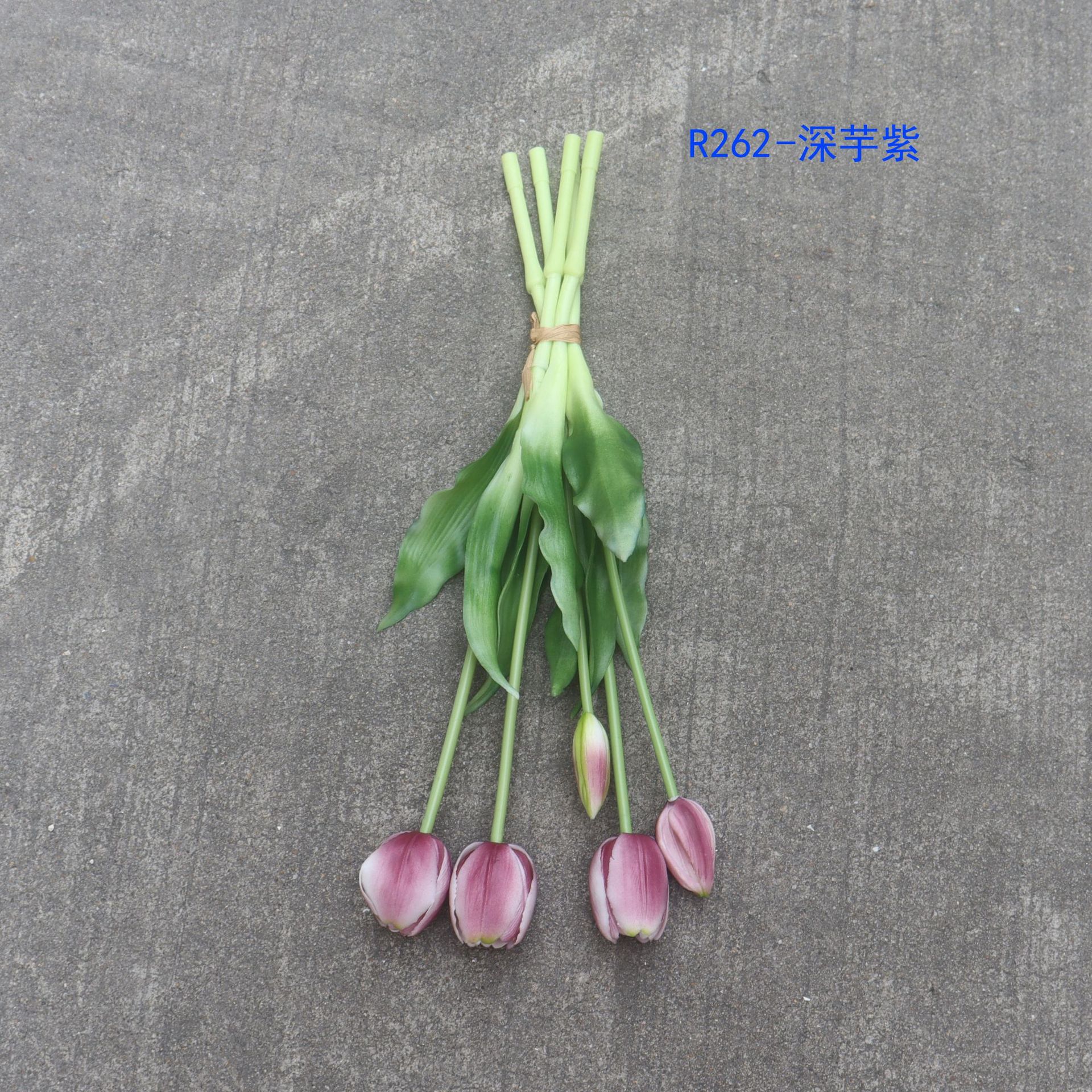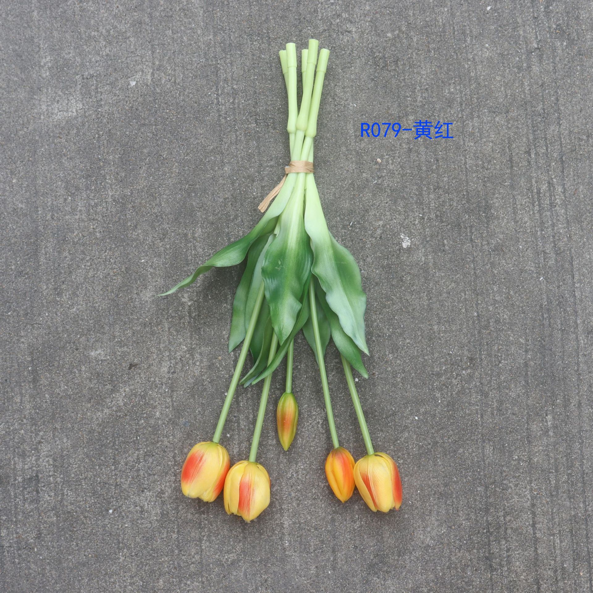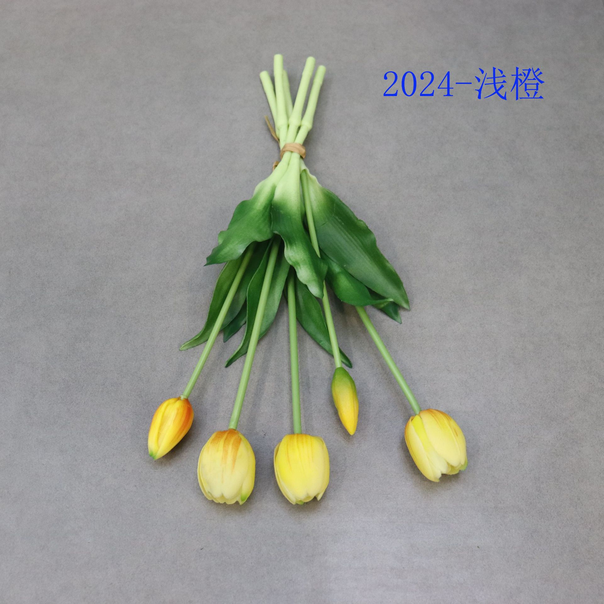 仿真软胶郁金香花束PE乳胶硅胶郁金香花仿真花保湿手感5头郁金香