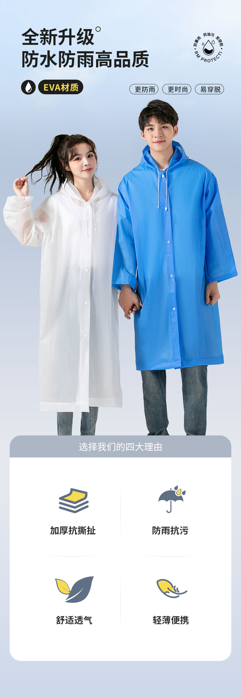 eva成人雨衣非一次性加厚加长户外骑行雨衣带帽加厚时尚连体雨披