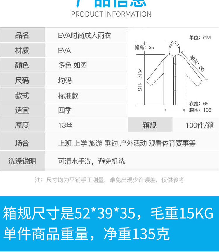 雨衣eva非一次性雨披加厚加长成人连体全身磨砂18丝150克可反复穿