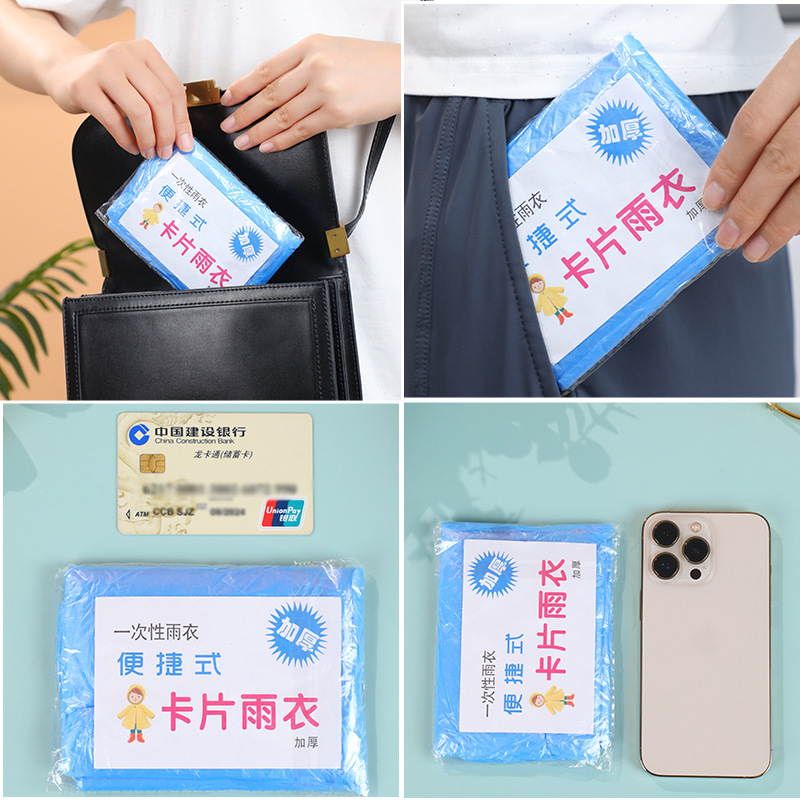 厂家批发一次性雨衣 旅游徒步连体透明雨披成人款加厚卡片雨衣