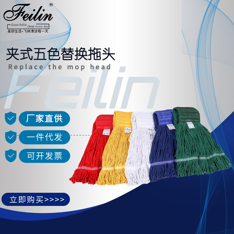 飞林加厚美式分色水拖头医院保洁家用可拆卸棉纱拖把墩布头一拖净