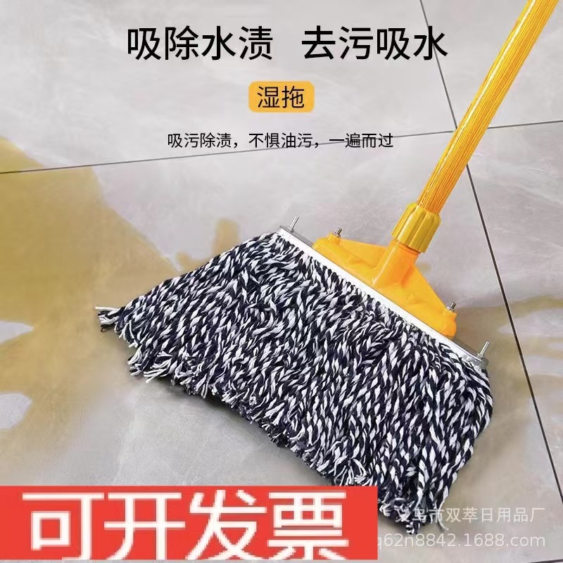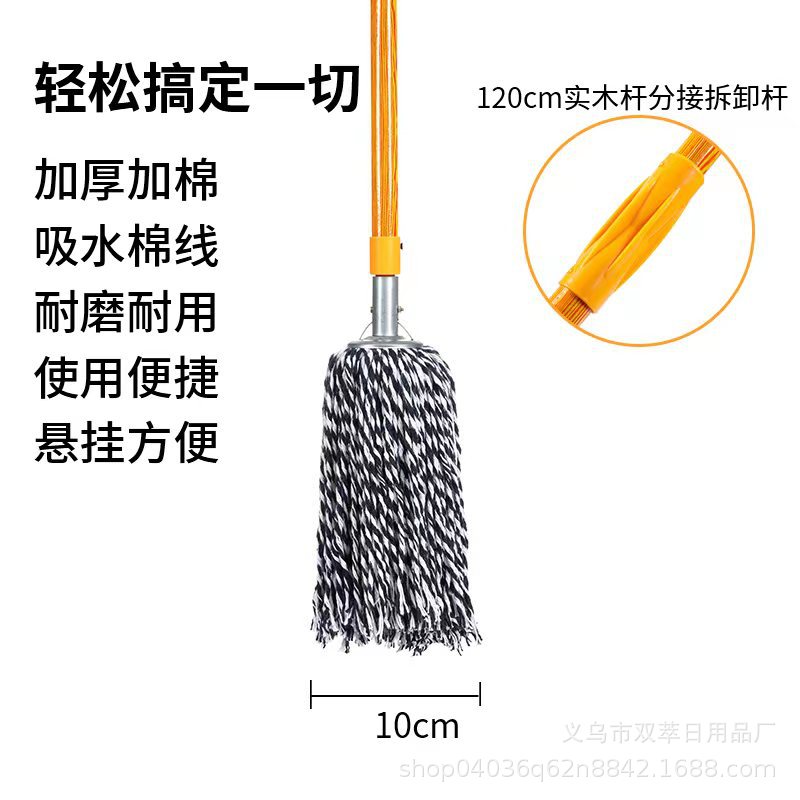 棉纱拖把木杆钢杆拖把墩布家用老式物业吸水普通大号地拖厂家批发