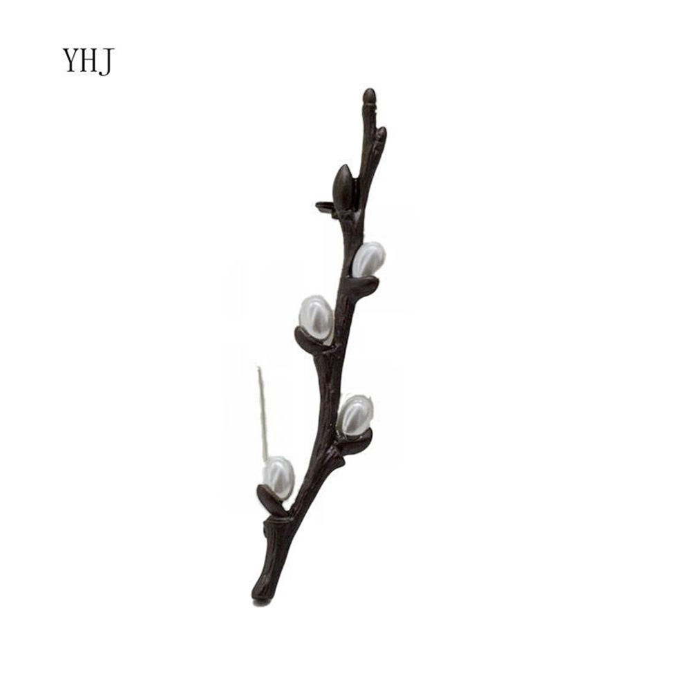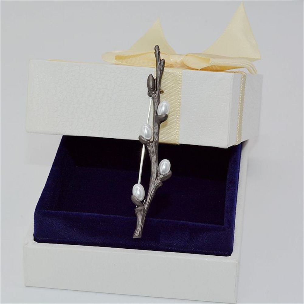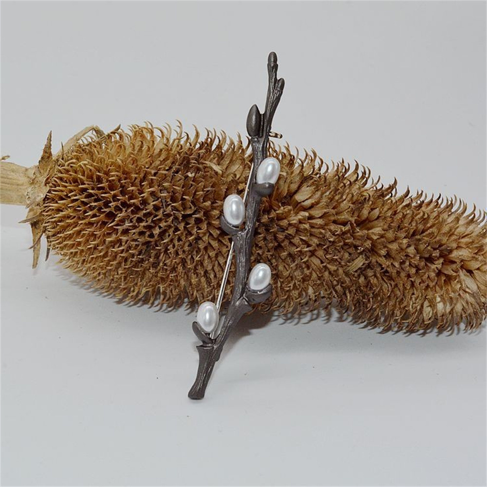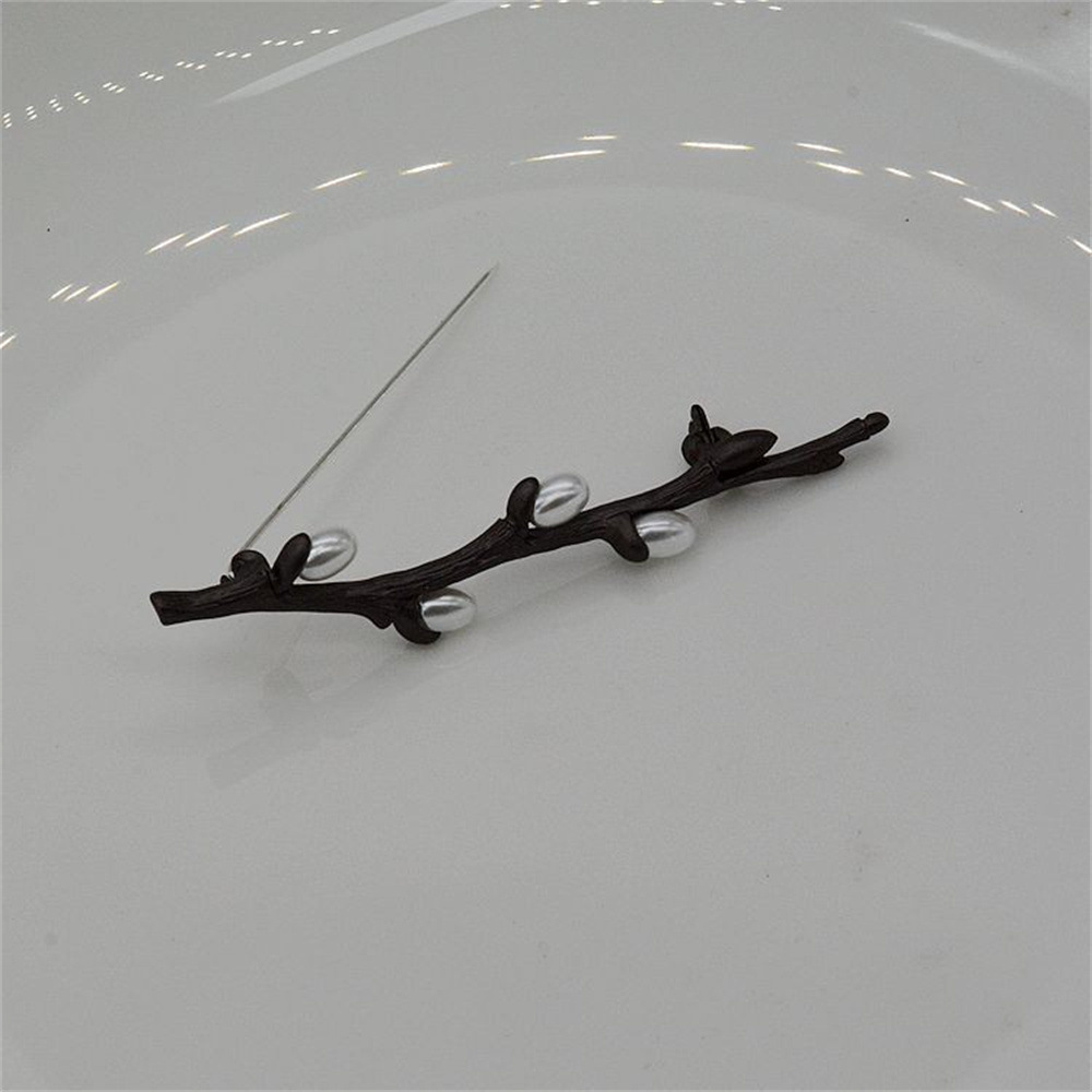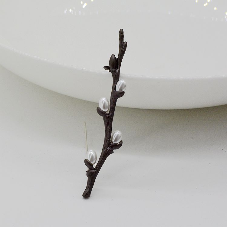 棕色烤漆树枝梅花枝镶珍珠胸针银河记欧美饰品古董别针女衣饰胸花