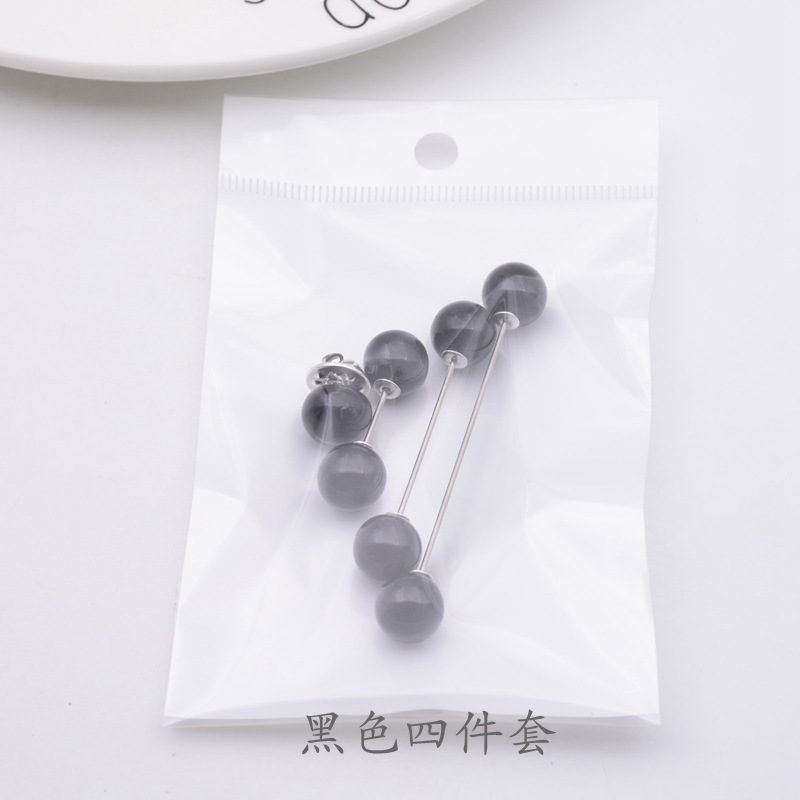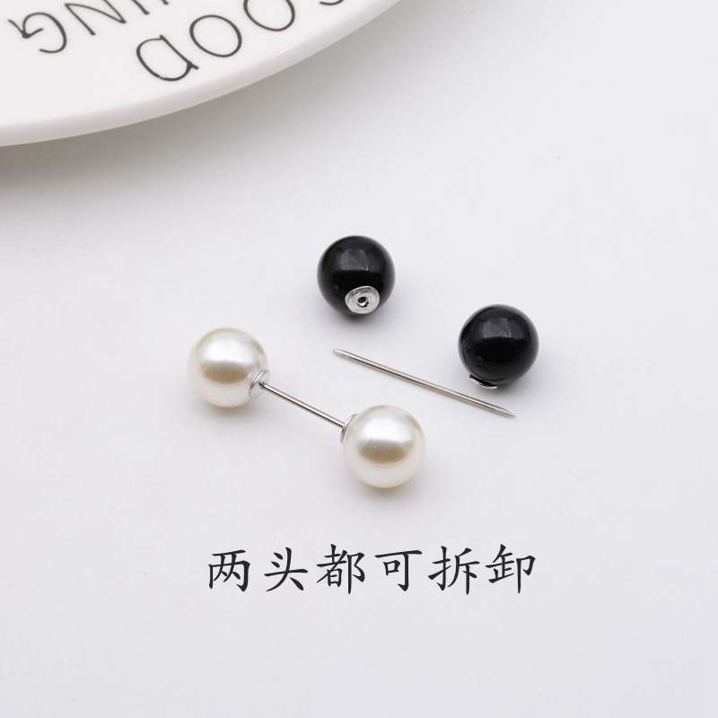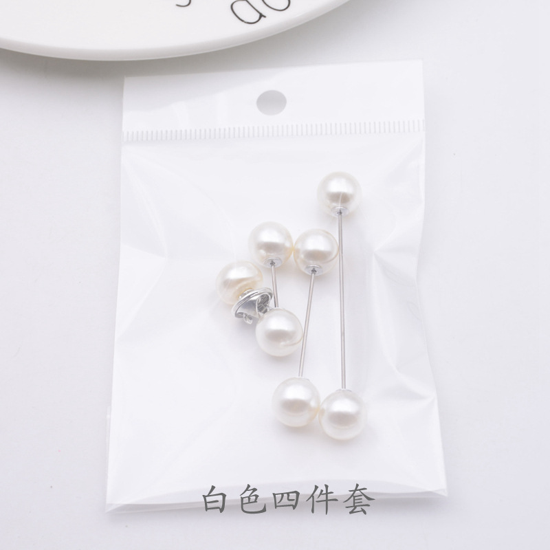 跨境黑白色一字珍珠插针 防走光收腰胸针套装 衣帽裙装饰胸花饰品