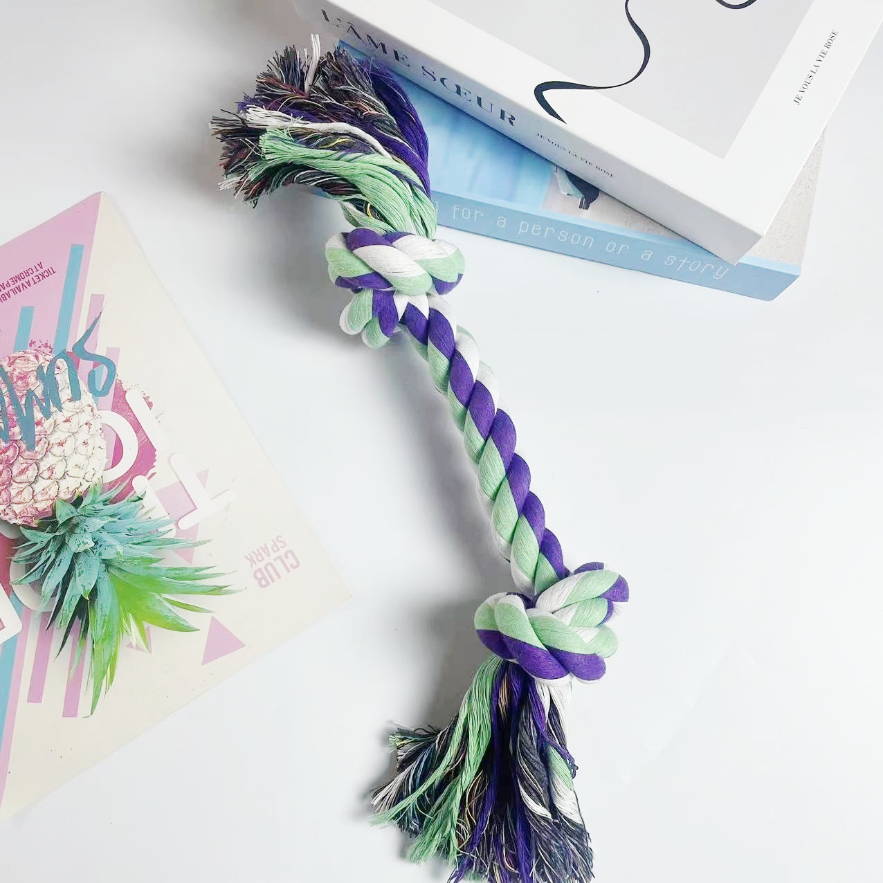 外贸狗狗玩具三股棉绳宠物玩具大中小型犬双结狗咬绳宠物玩具厂家