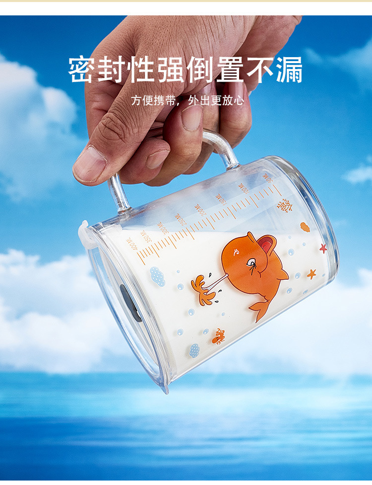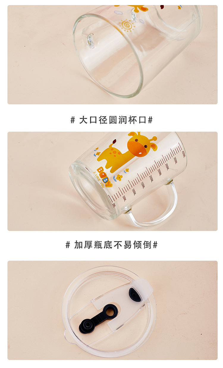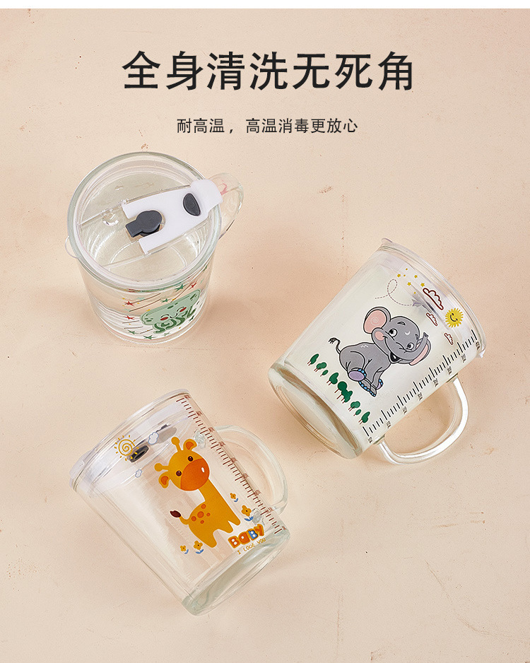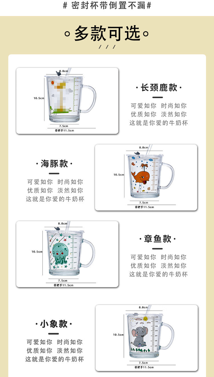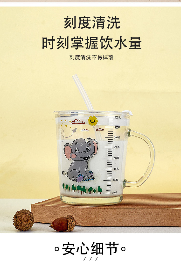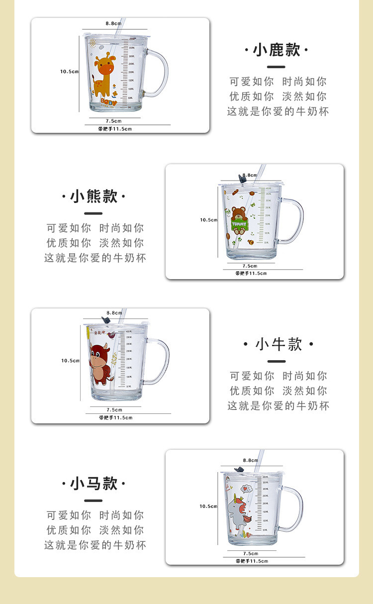 可爱把子牛奶刻度杯把手水杯动物卡通图案吸管杯早餐高颜值玻璃杯