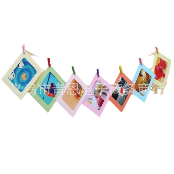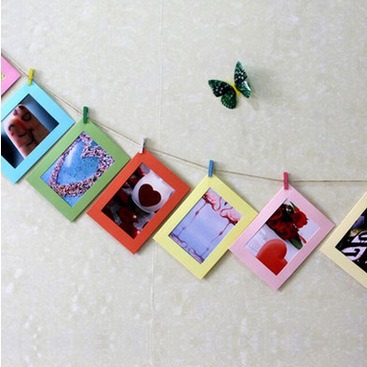 厂家批发创意悬挂纸相框3567寸七彩10张带麻绳夹子组合相片墙批发