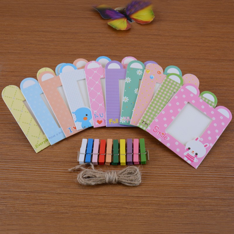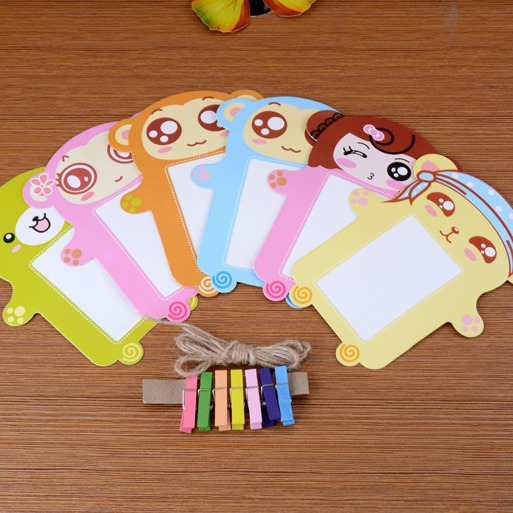 厂家批发卡通纸相框 拍立得3寸挂墙照片框组合麻绳夹子照片墙批发