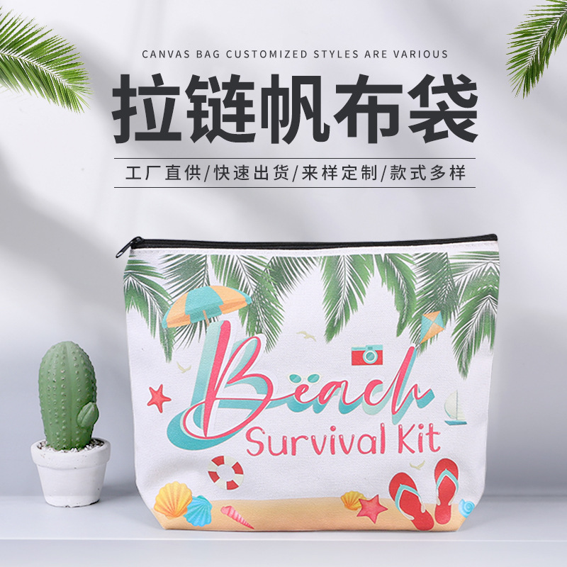 学生帆布笔袋拉链袋定制logo图案印刷文具袋零钱收纳化妆品手拿包