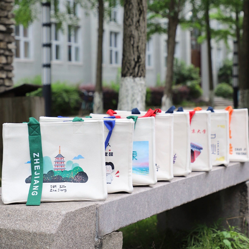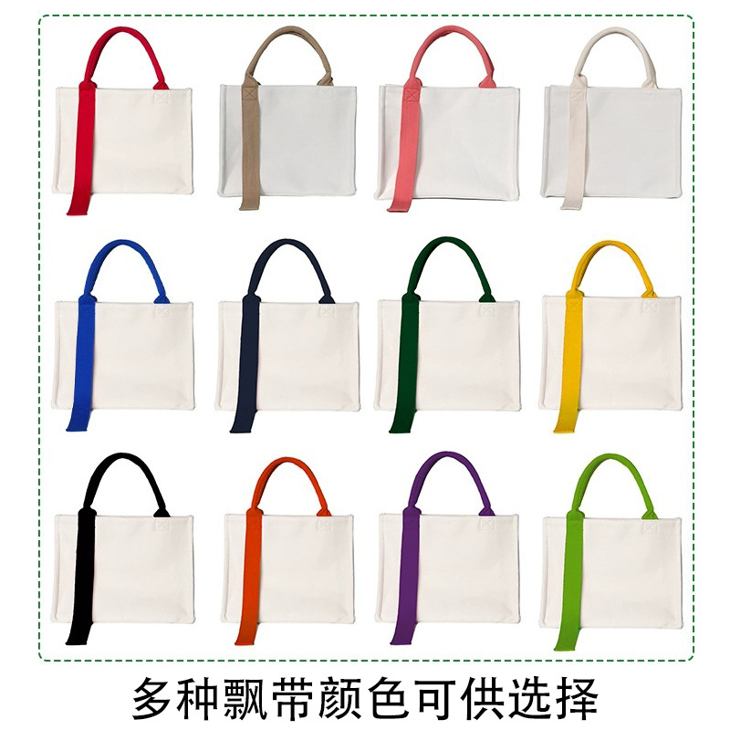 高端立体帆布袋定制logo飘带托特包棉布袋斜跨单肩包覆膜EVA定做