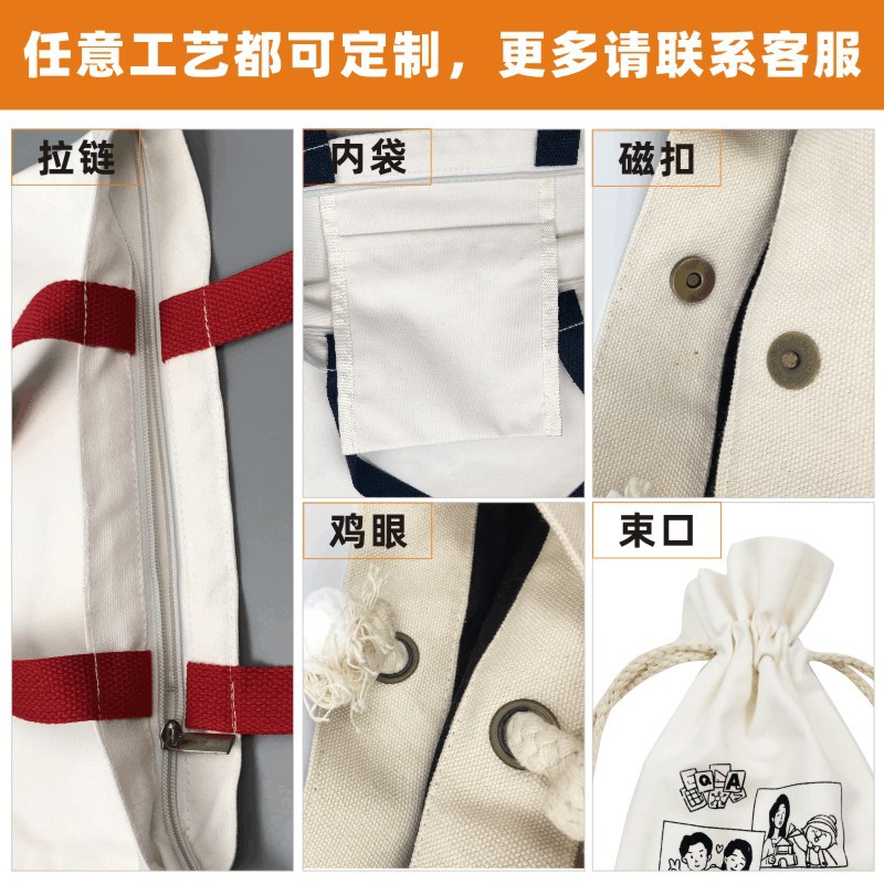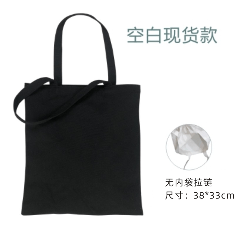 厂家拉链帆布袋定制全棉logo空白手提印花纯棉彩印帆布包定做黑色