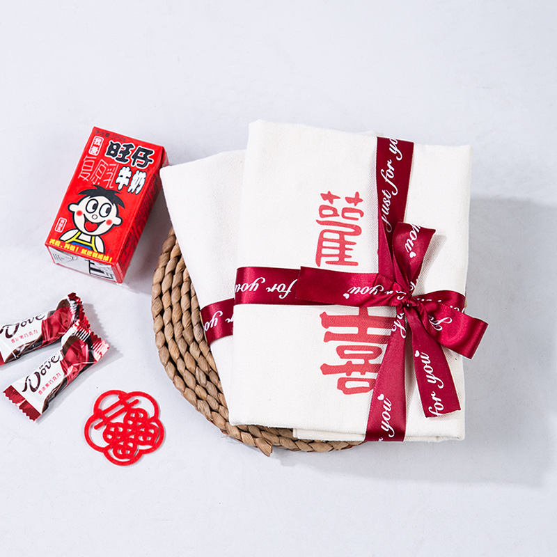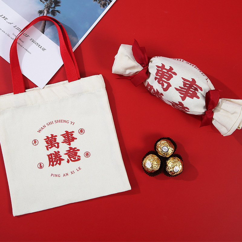 结婚喜糖帆布袋万事胜意喜糖袋伴手礼欢喜婚礼布袋束口礼品袋批发