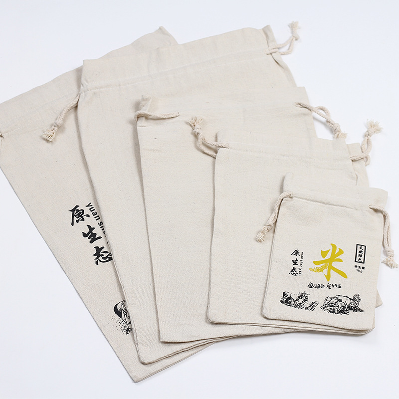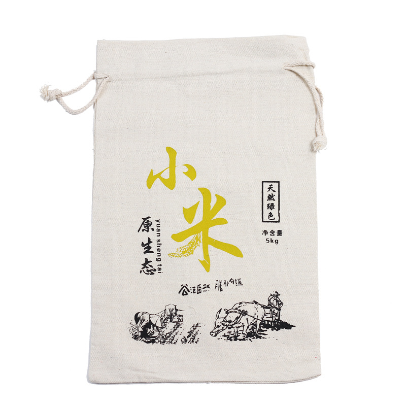 现货大米包装袋子帆布束口袋棉麻拉绳束口收纳袋定 制帆布抽绳袋
