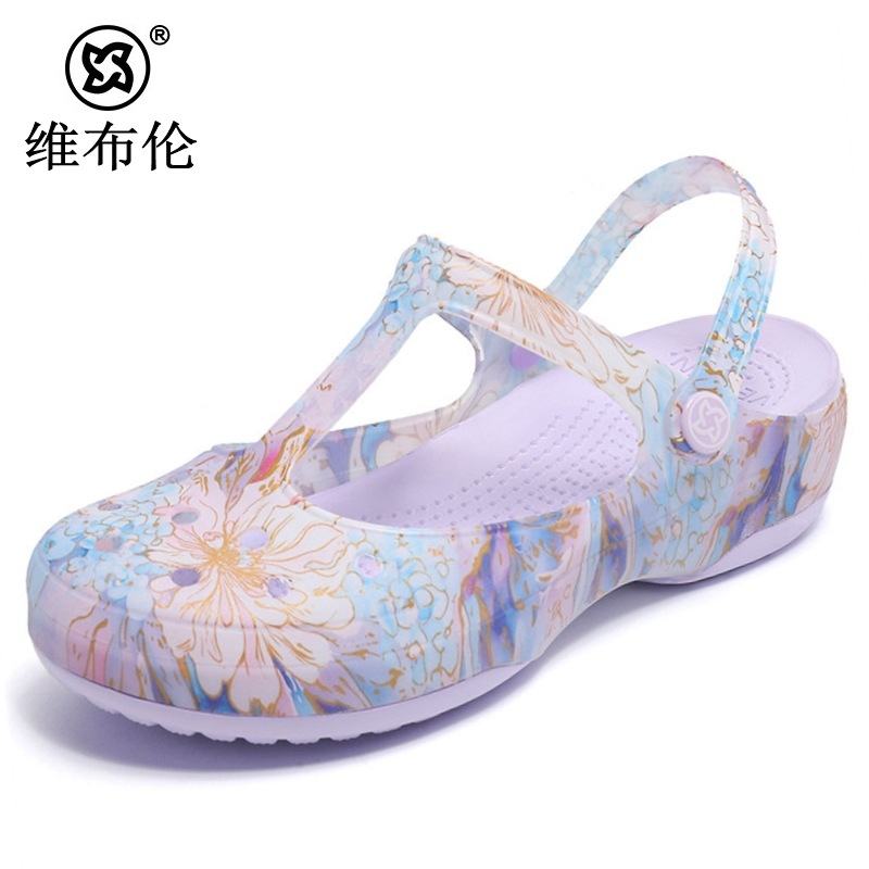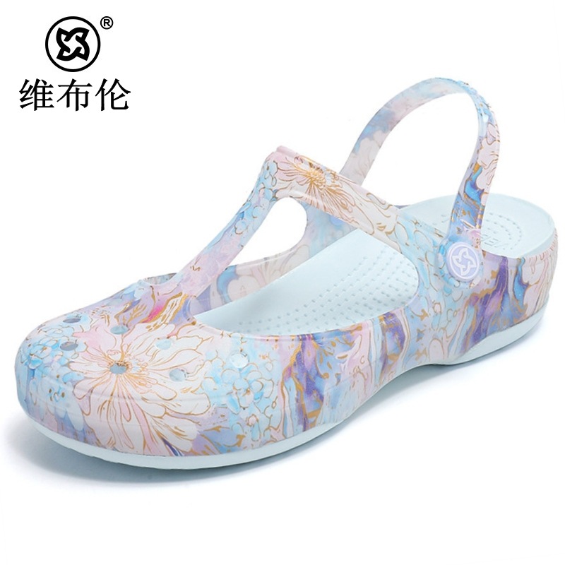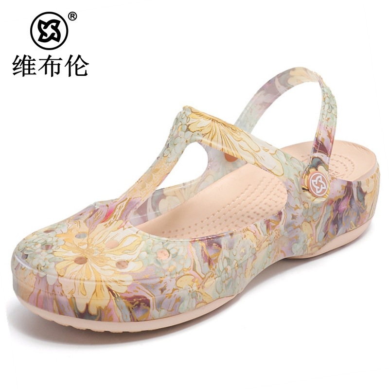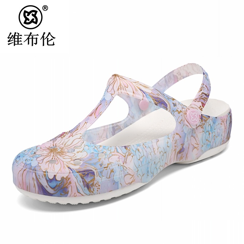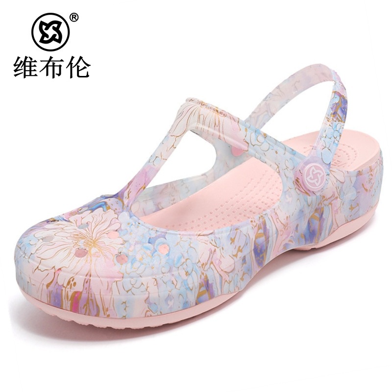 跨境veblen维布伦洞洞鞋女夏包头凉鞋软底外穿拖鞋防滑厚底沙滩鞋