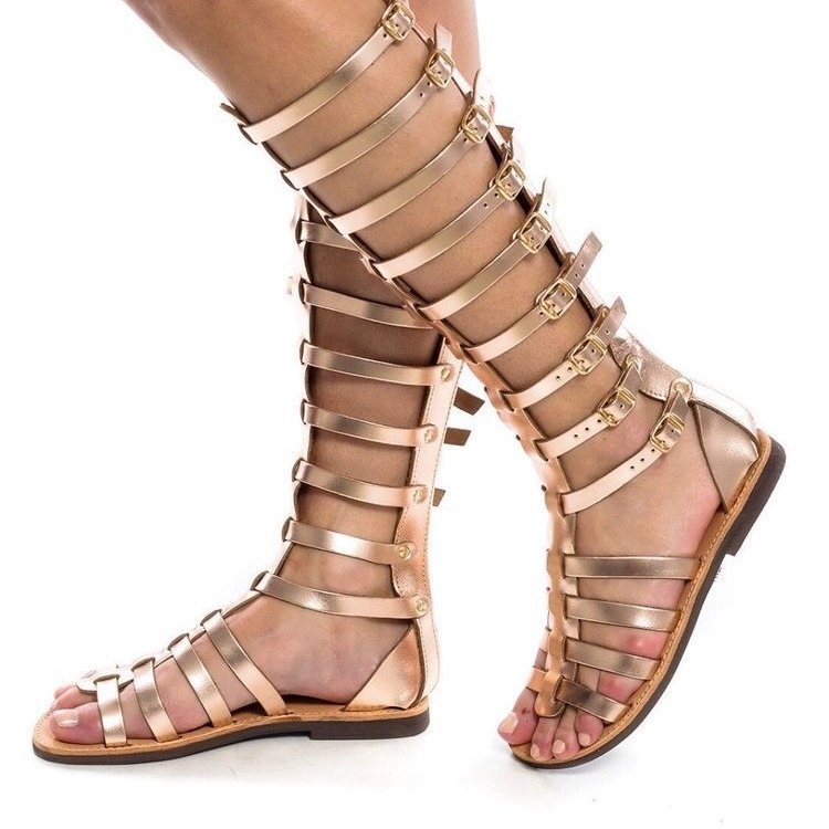 外贸大码凉靴女2024春夏新款凉鞋露趾高筒镂空平底皮带扣罗马凉靴