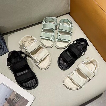 跨境夏季网红新款潮流厚底双条带沙滩情侣魔术贴休闲凉鞋女现货