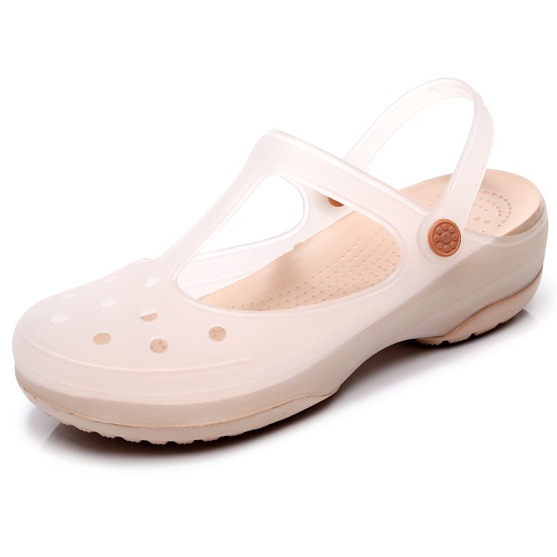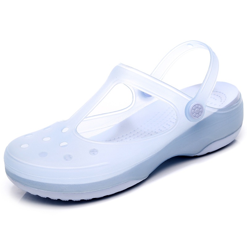 跨境夏季洞洞鞋女包头凉鞋防滑厚底纯色果冻鞋软底沙滩鞋外穿拖鞋