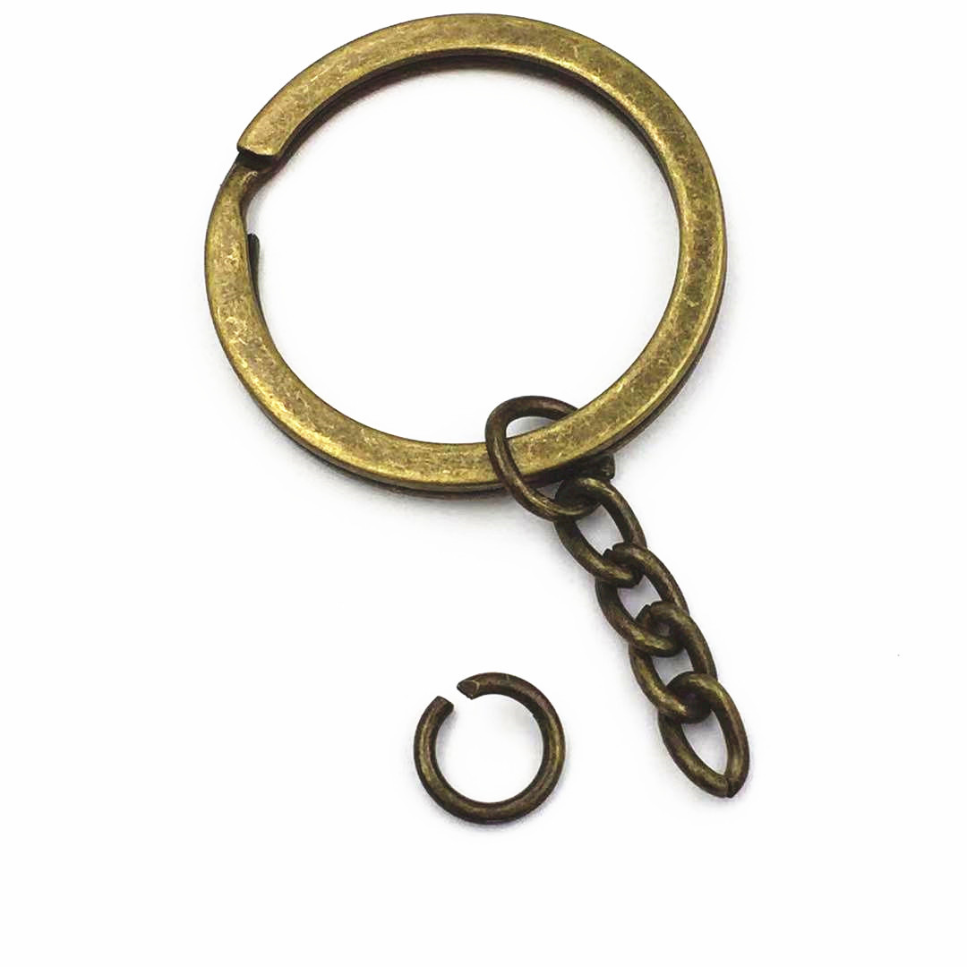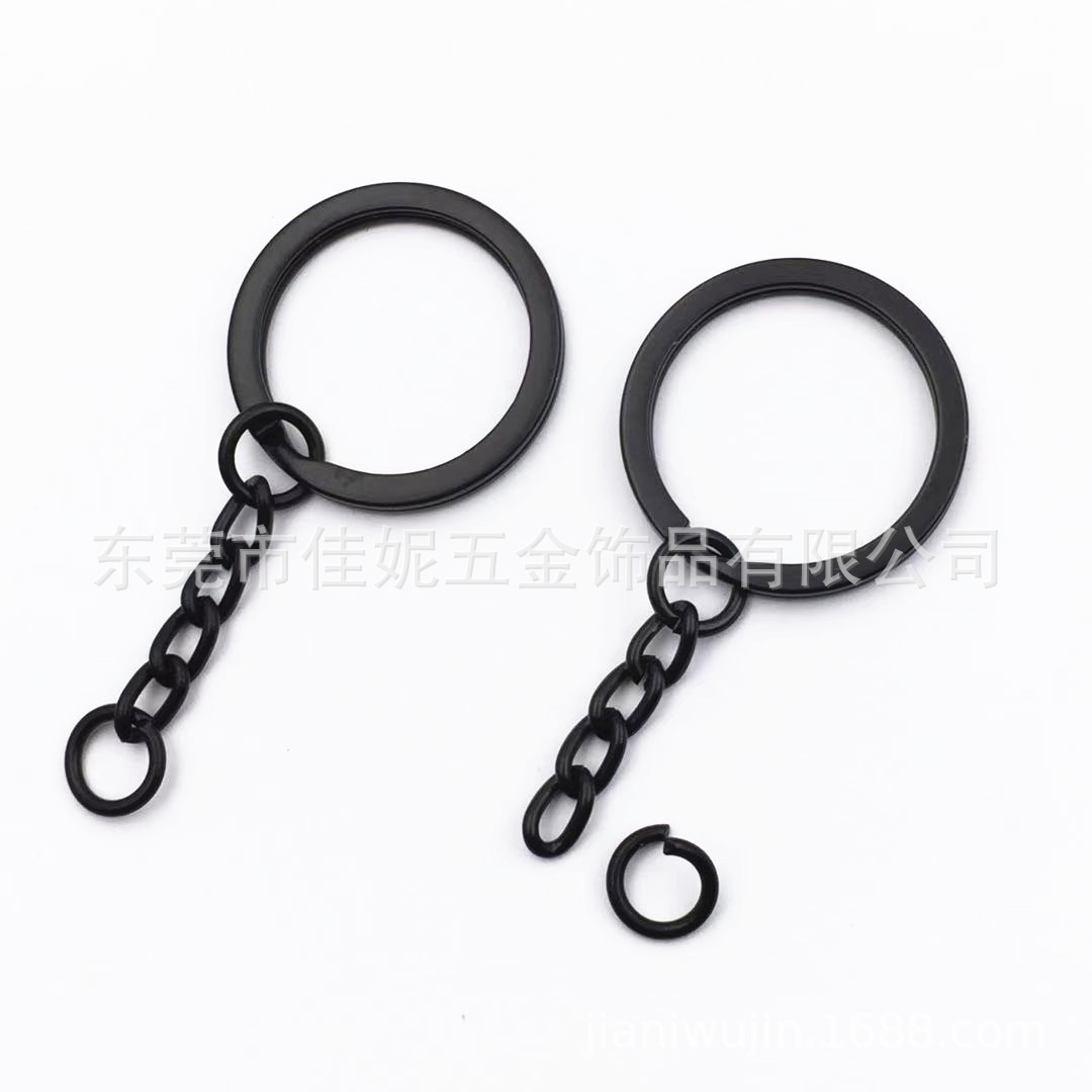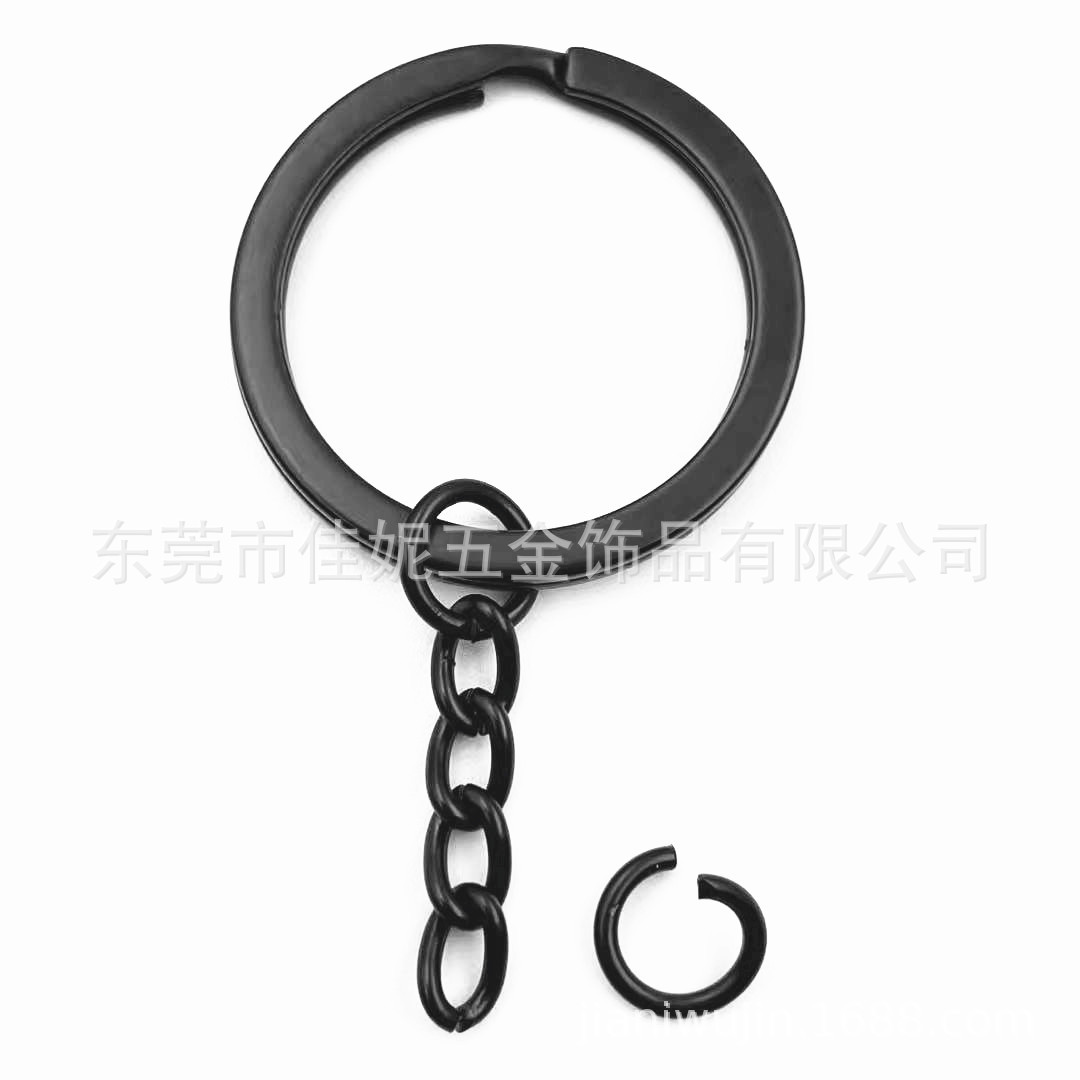 东莞现货复古铜色钥匙圈带链配开口 黑色钥匙扣K C金色钥匙链配环