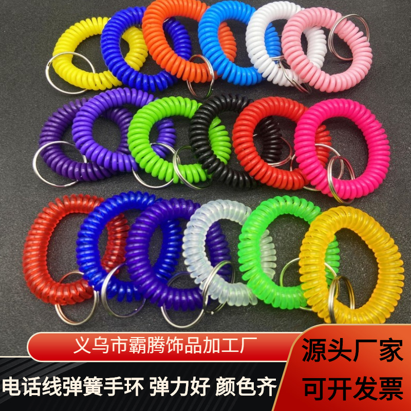 EVA塑料弹簧手圈寄存号码牌伸缩钥匙圈手环弹簧绳电话线驱蚊手环