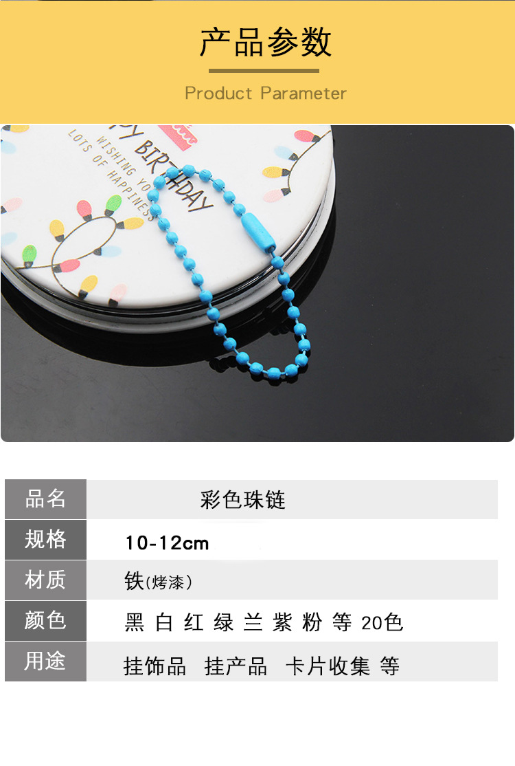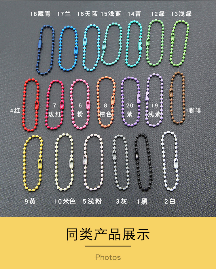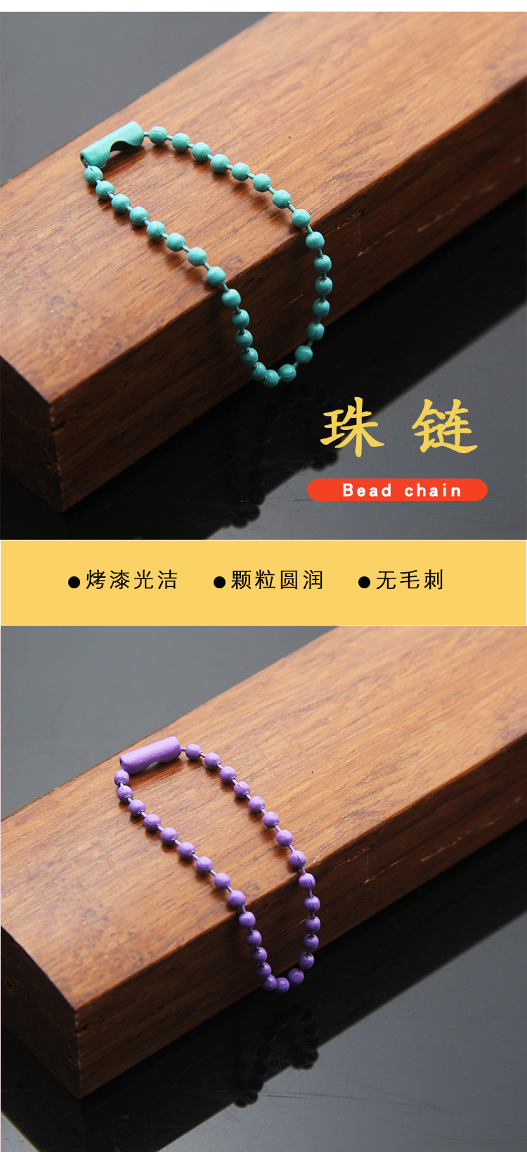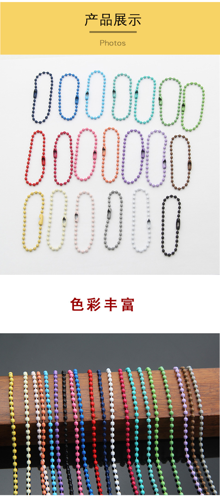 现货DIY金属彩色烤漆吊牌珠链 毛绒玩具糖果色钥匙扣饰品珠链挂件