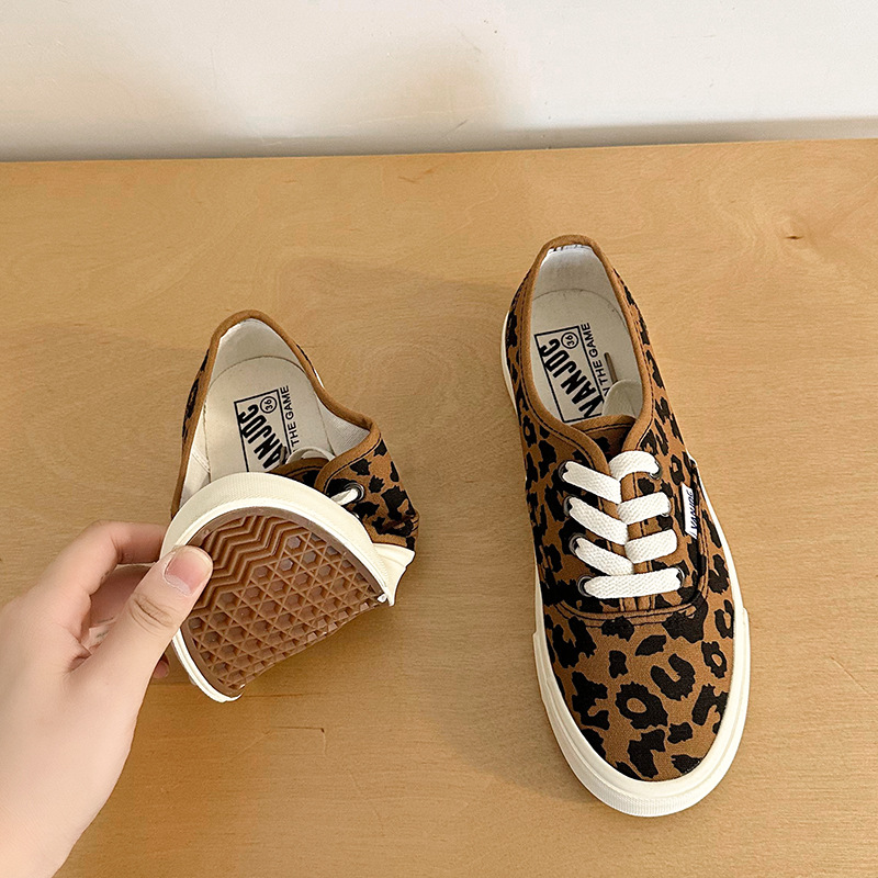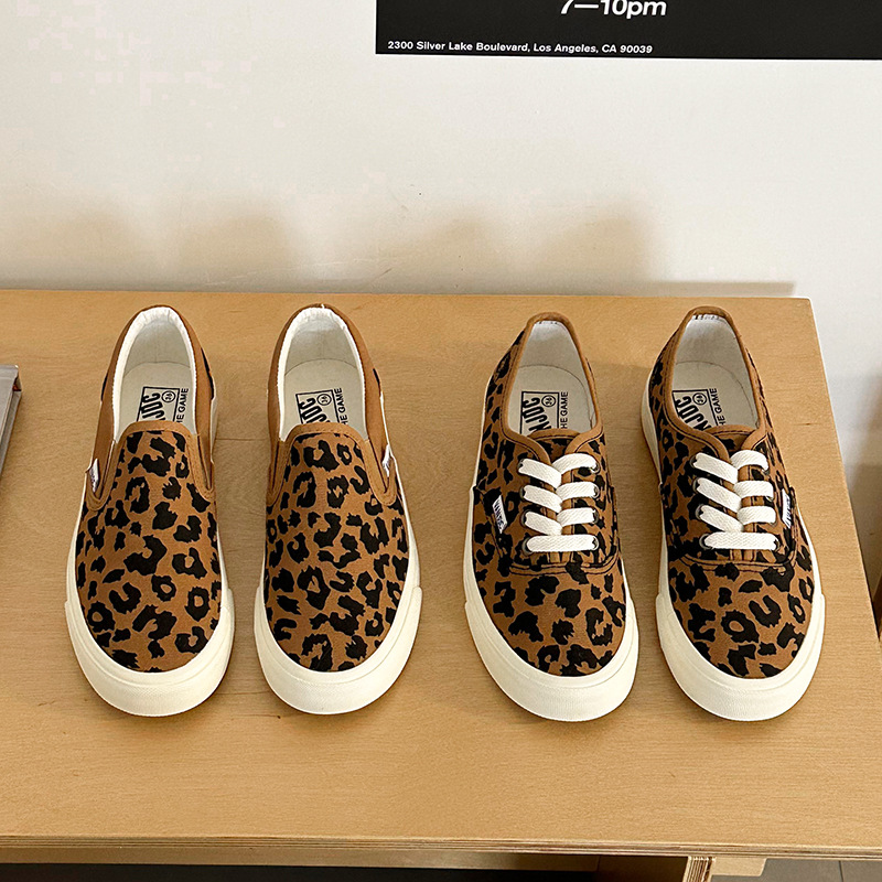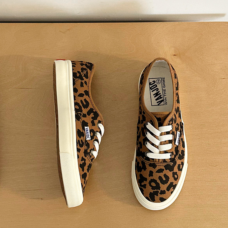 豹纹帆布鞋女2025春季韩版学生ins网红板鞋百搭chic一脚蹬懒人鞋