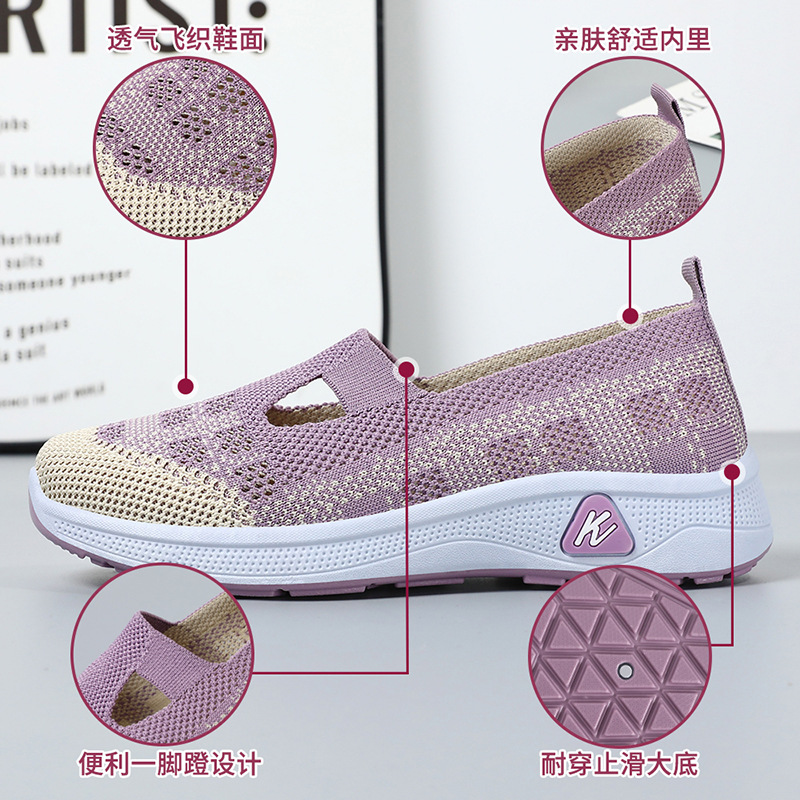 夏季新款鞋子女透气舒适单鞋老北京布鞋一脚蹬妈妈鞋跨境temu代发