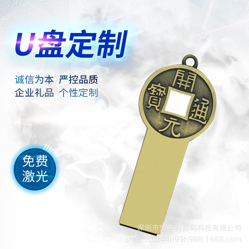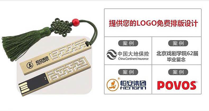中国风u盘刻字 如意四叶草32g创意展会礼品定印企业logo投标U盘