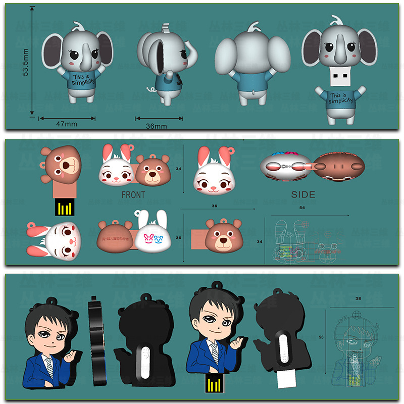 PVC创意公仔卡通u盘定制礼品立体吉祥物USB礼品迷你可爱软胶优盘