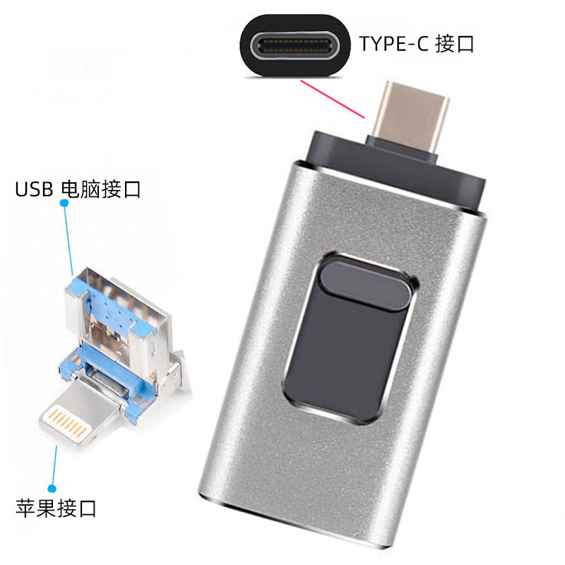 批发多功能三合一手机U盘适用苹果安卓电脑usb3.064g高速跨境优盘
