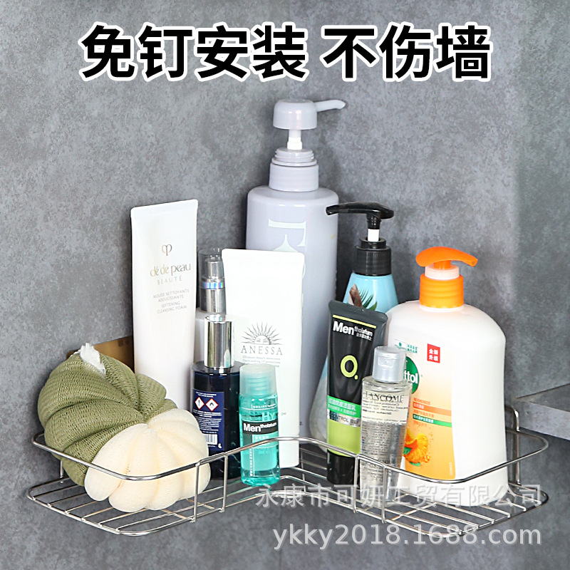 多功能转角置物架三角架卫生间浴室厨房免打孔不锈钢铁艺喷漆