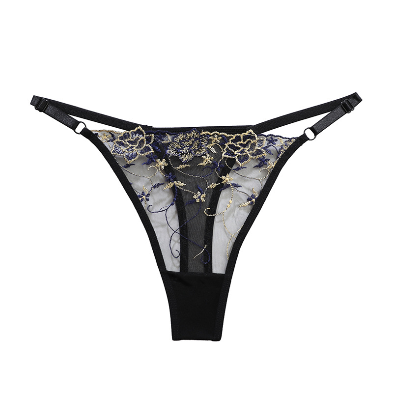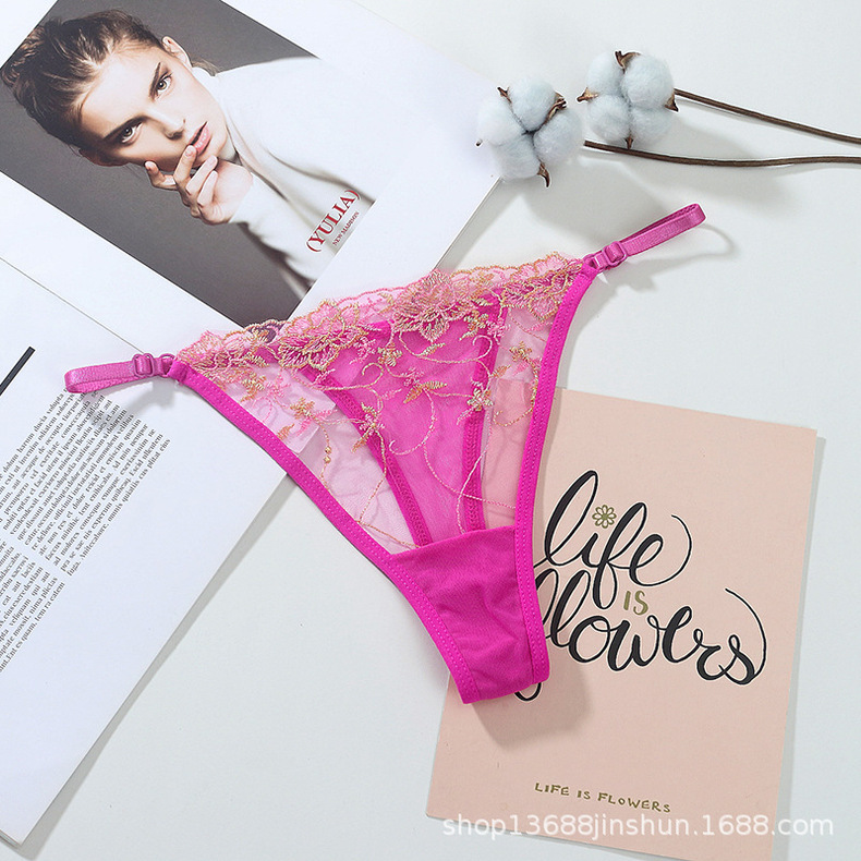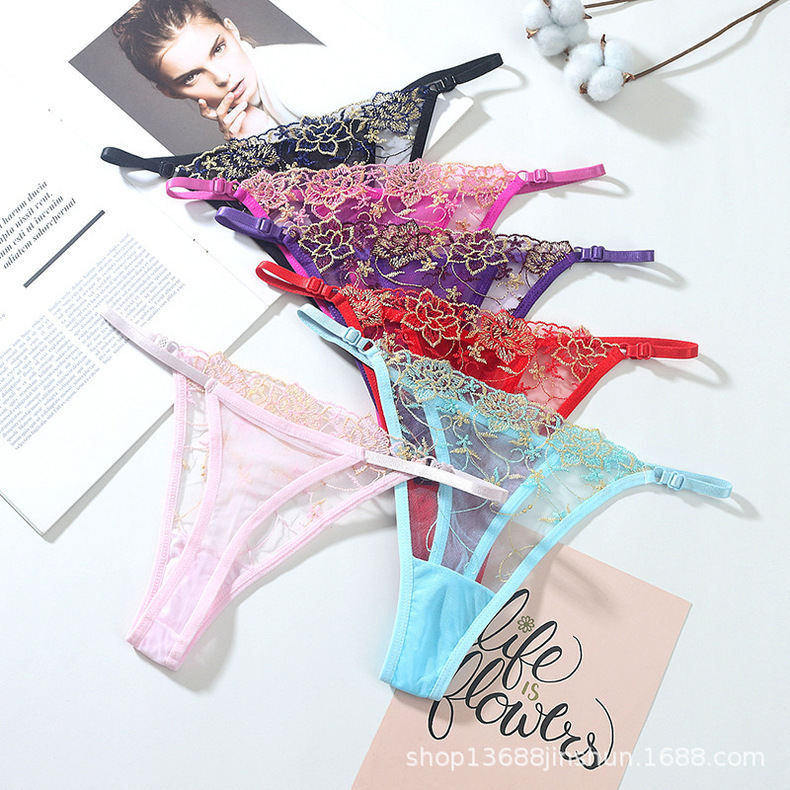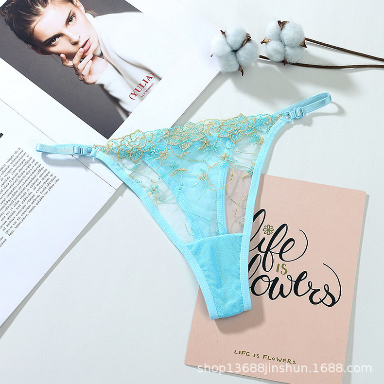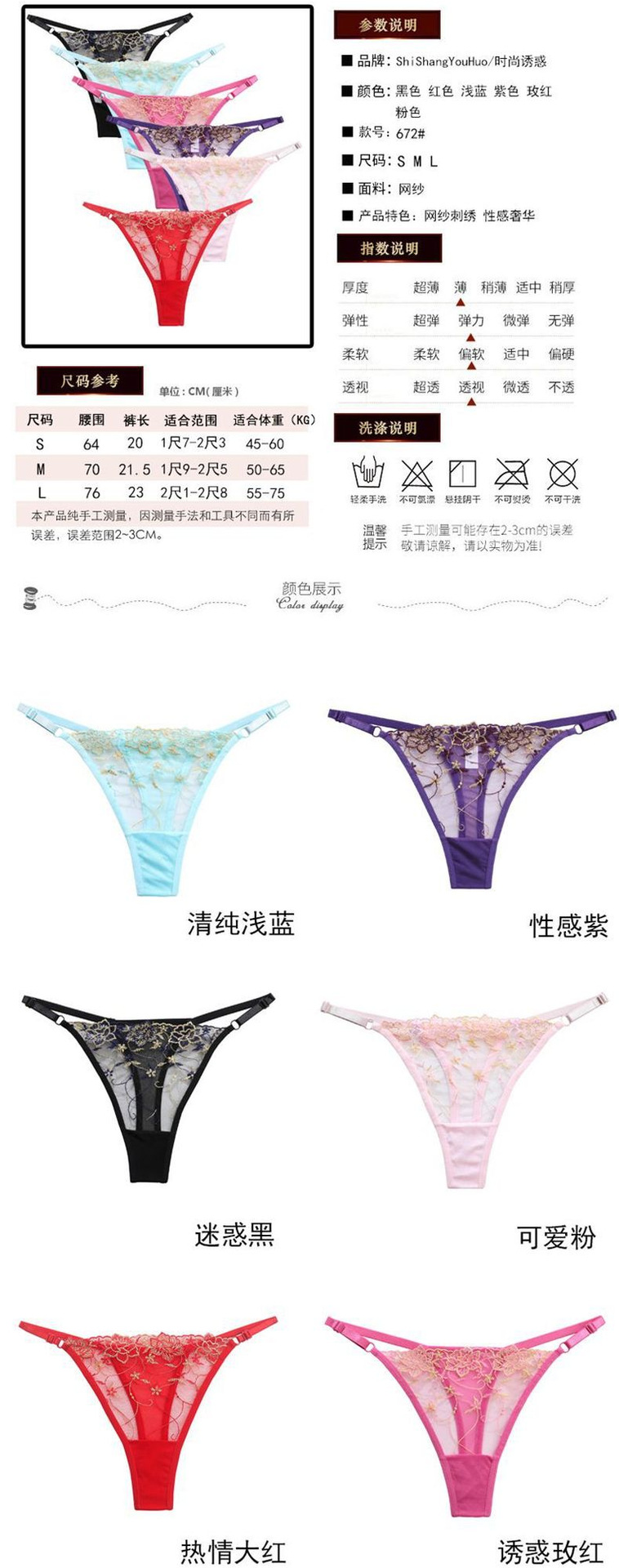 新品可调整大码性感内裤女刺绣镂空网纱诱惑女士丁字裤t裤 672