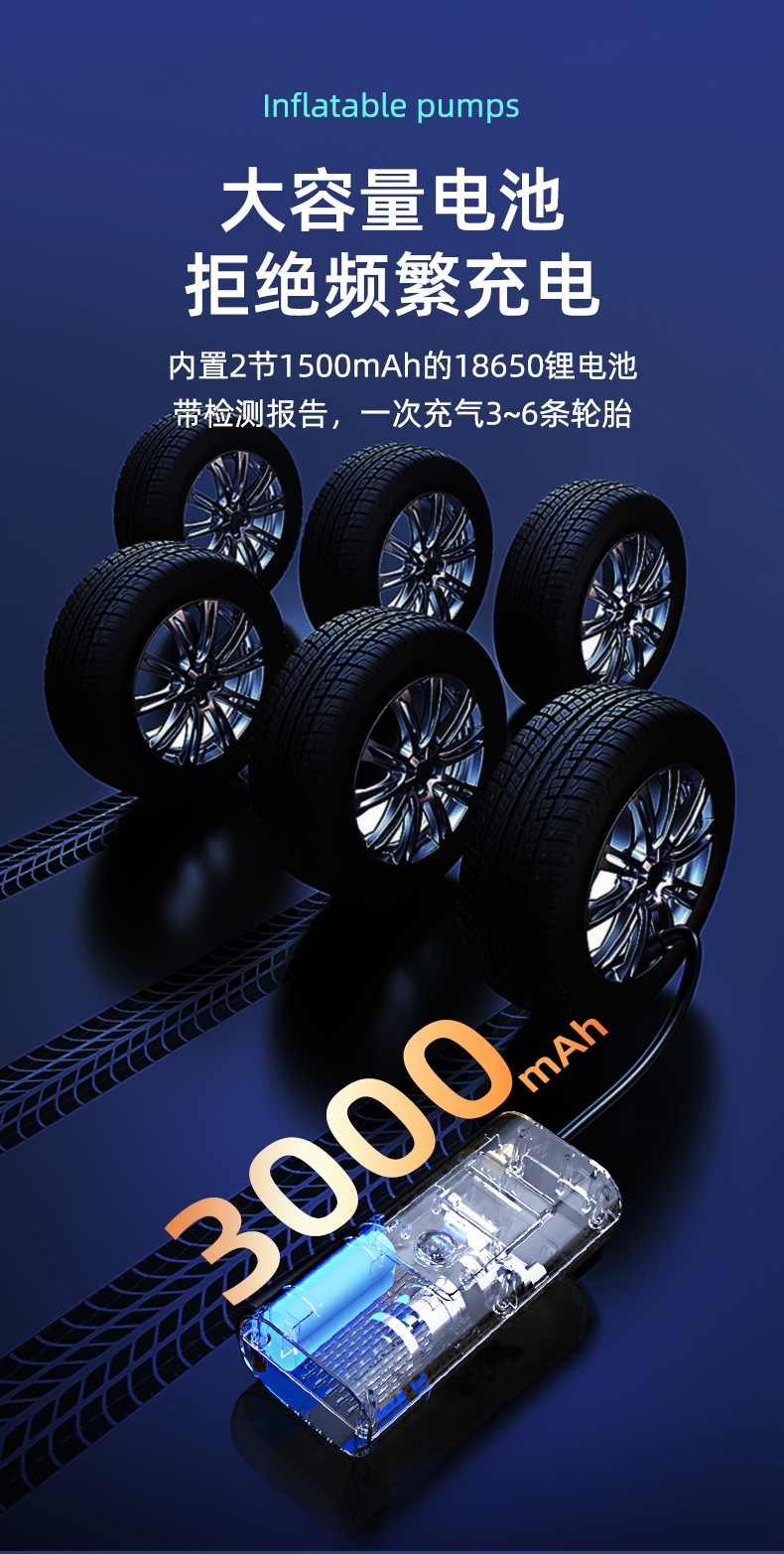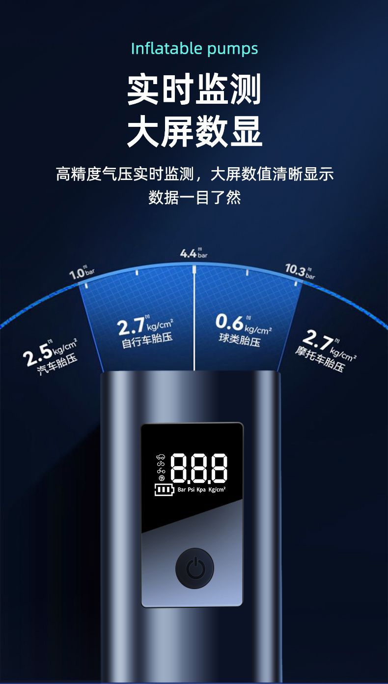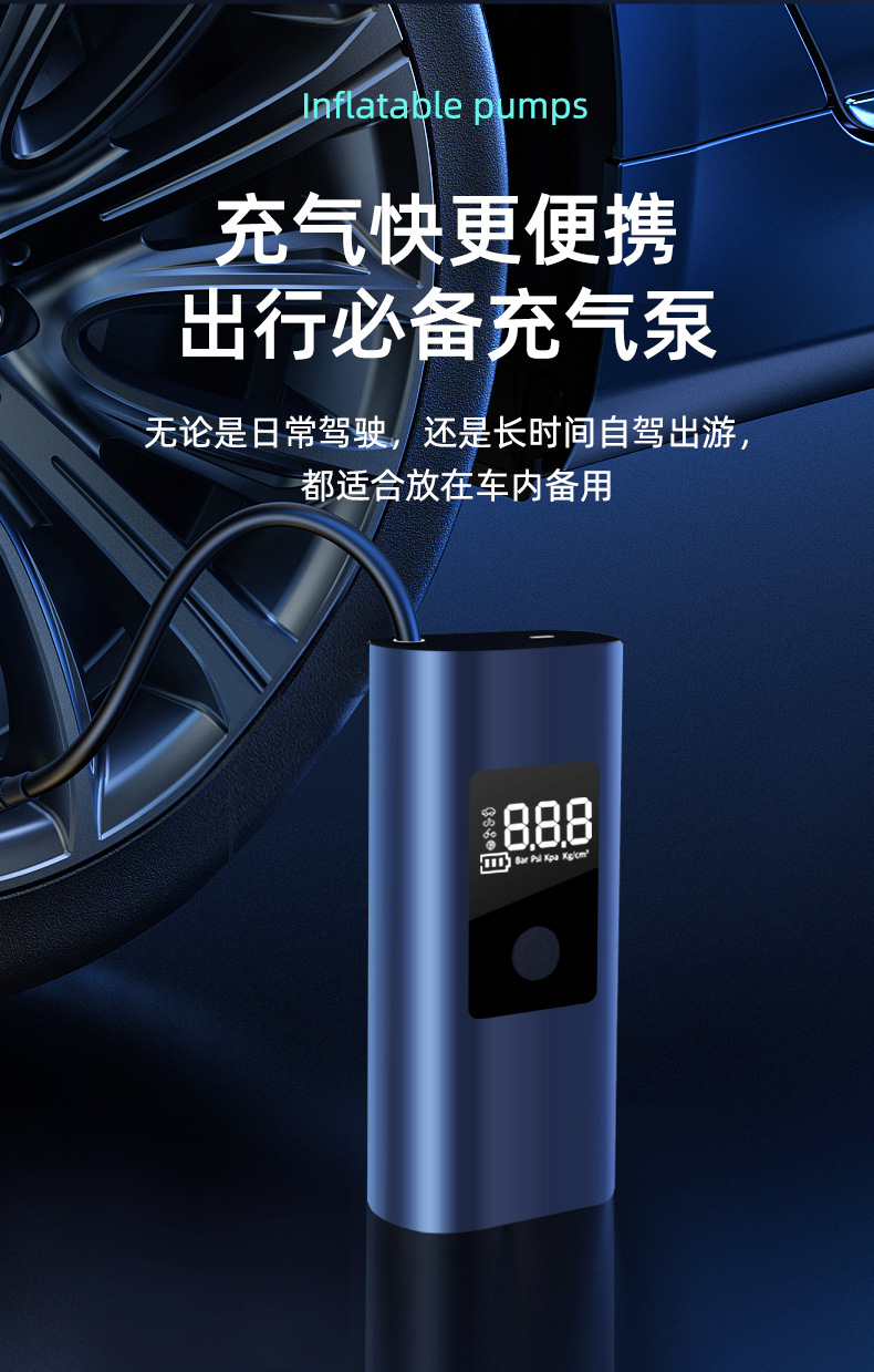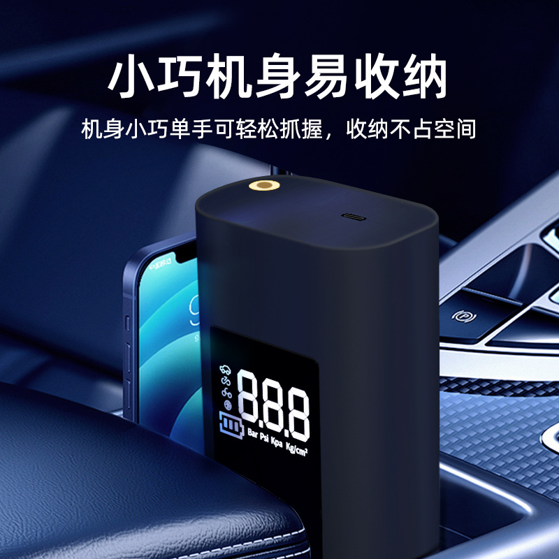 新款跨境充气泵大电池容量便携多功能手持汽车无线数显车载打气泵