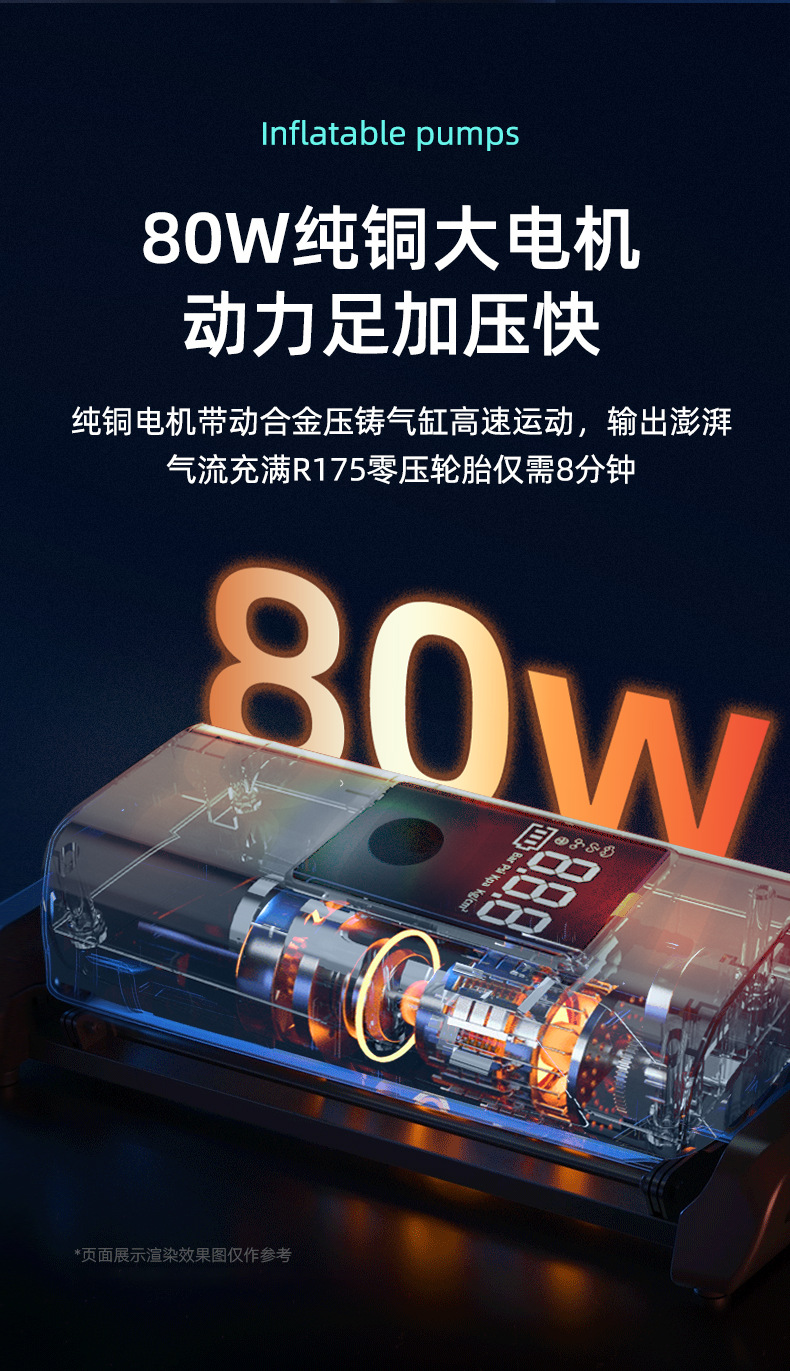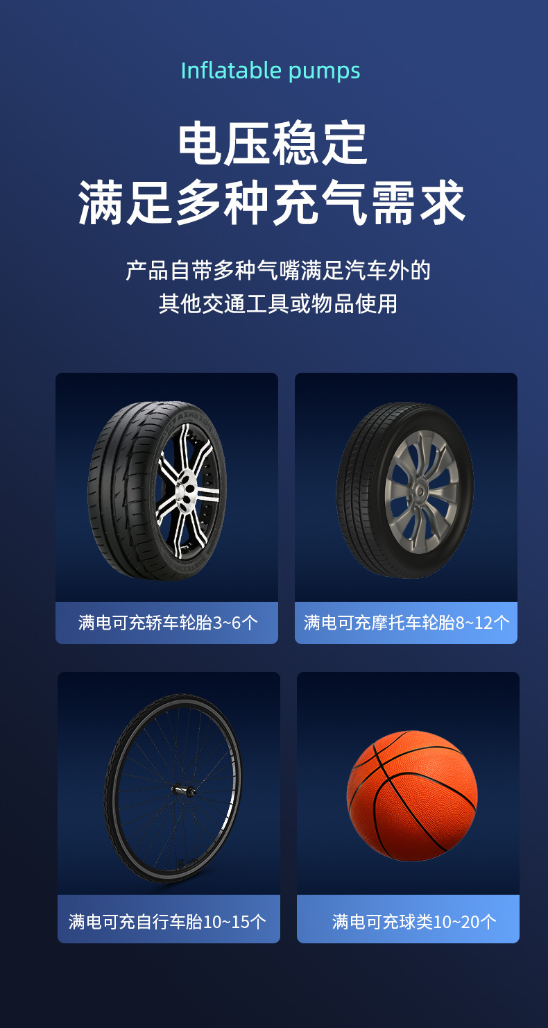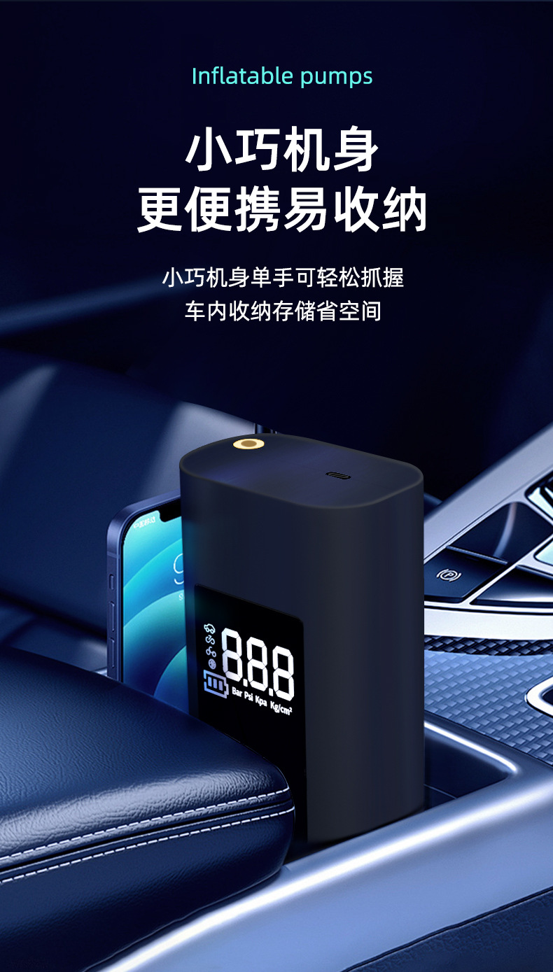 新款跨境充气泵大电池容量便携多功能手持汽车无线数显车载打气泵