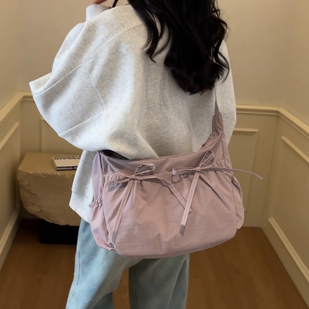 新款褶皱包休闲韩版帆布包大容量女包ins风斜挎单肩包2104