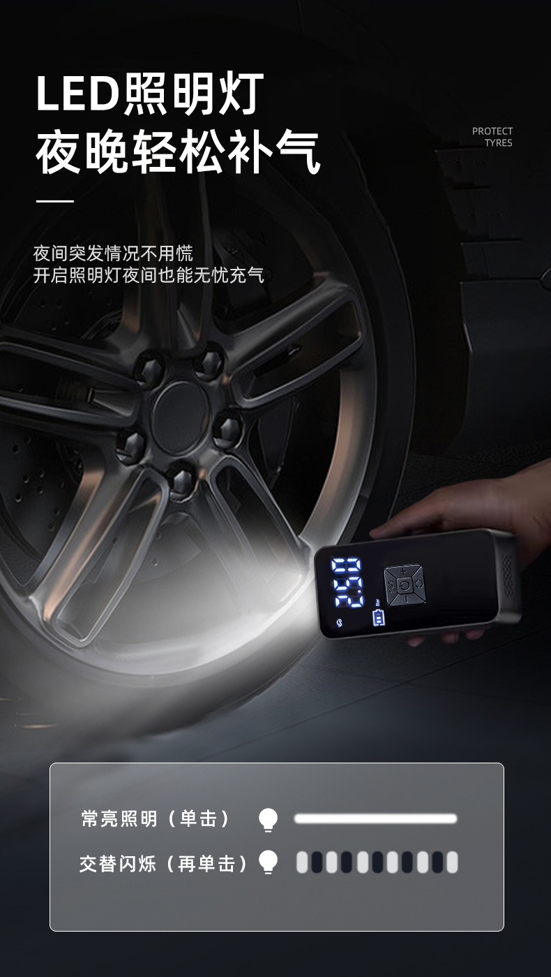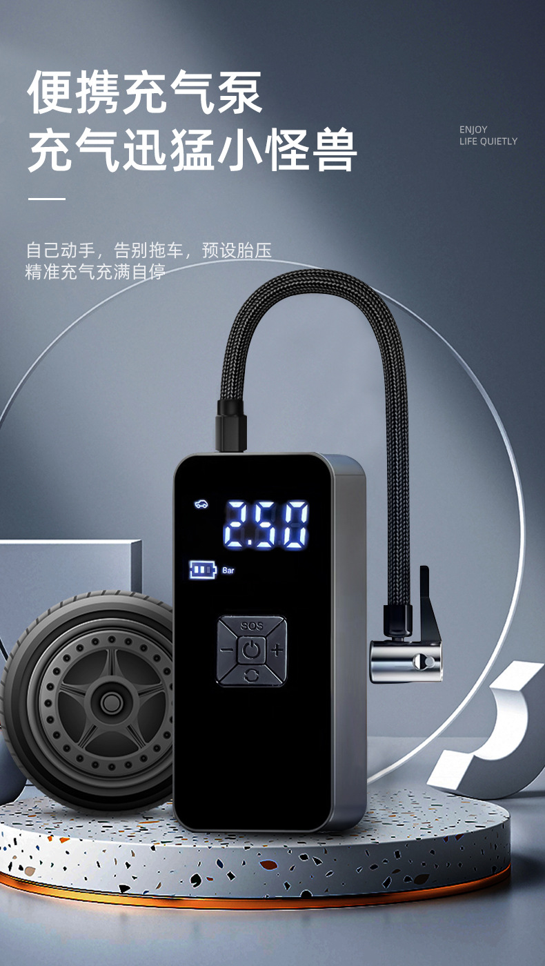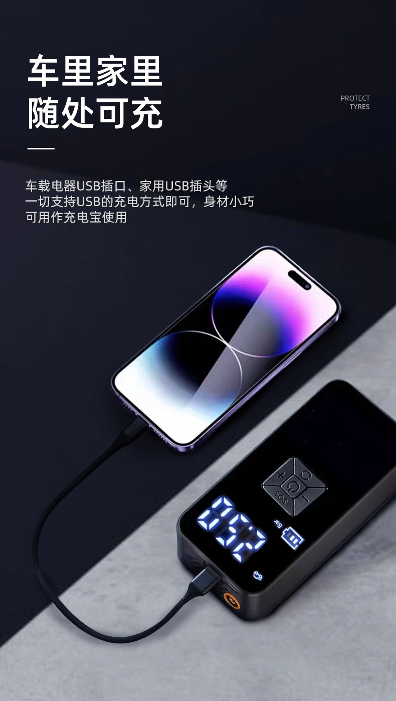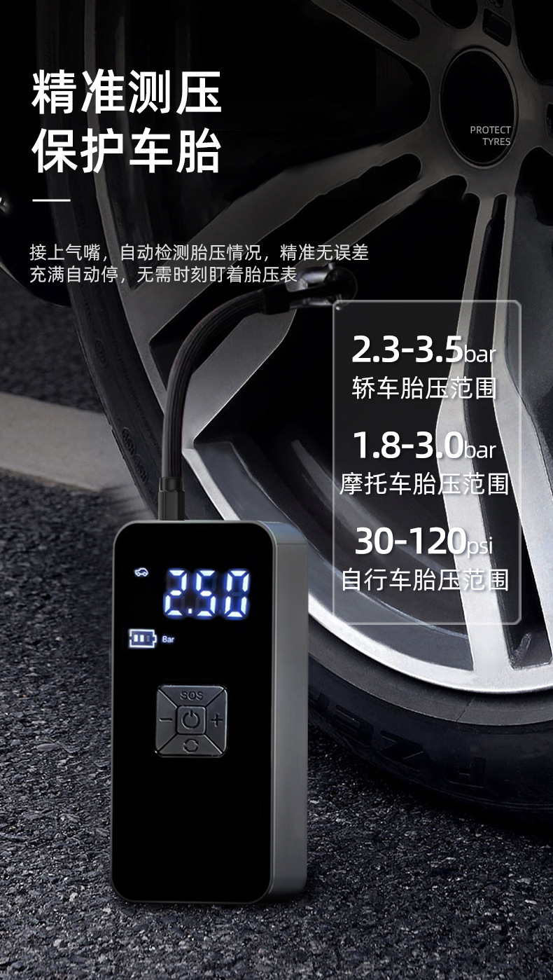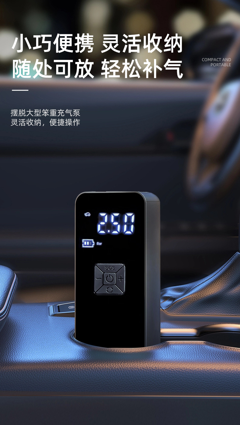 车载充气泵便携式无线电动打气筒多功能应急充电宝迷你轮胎打气泵