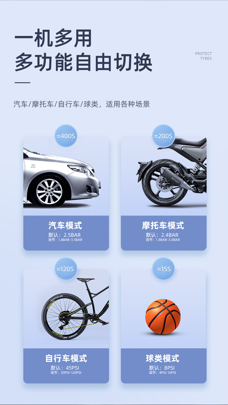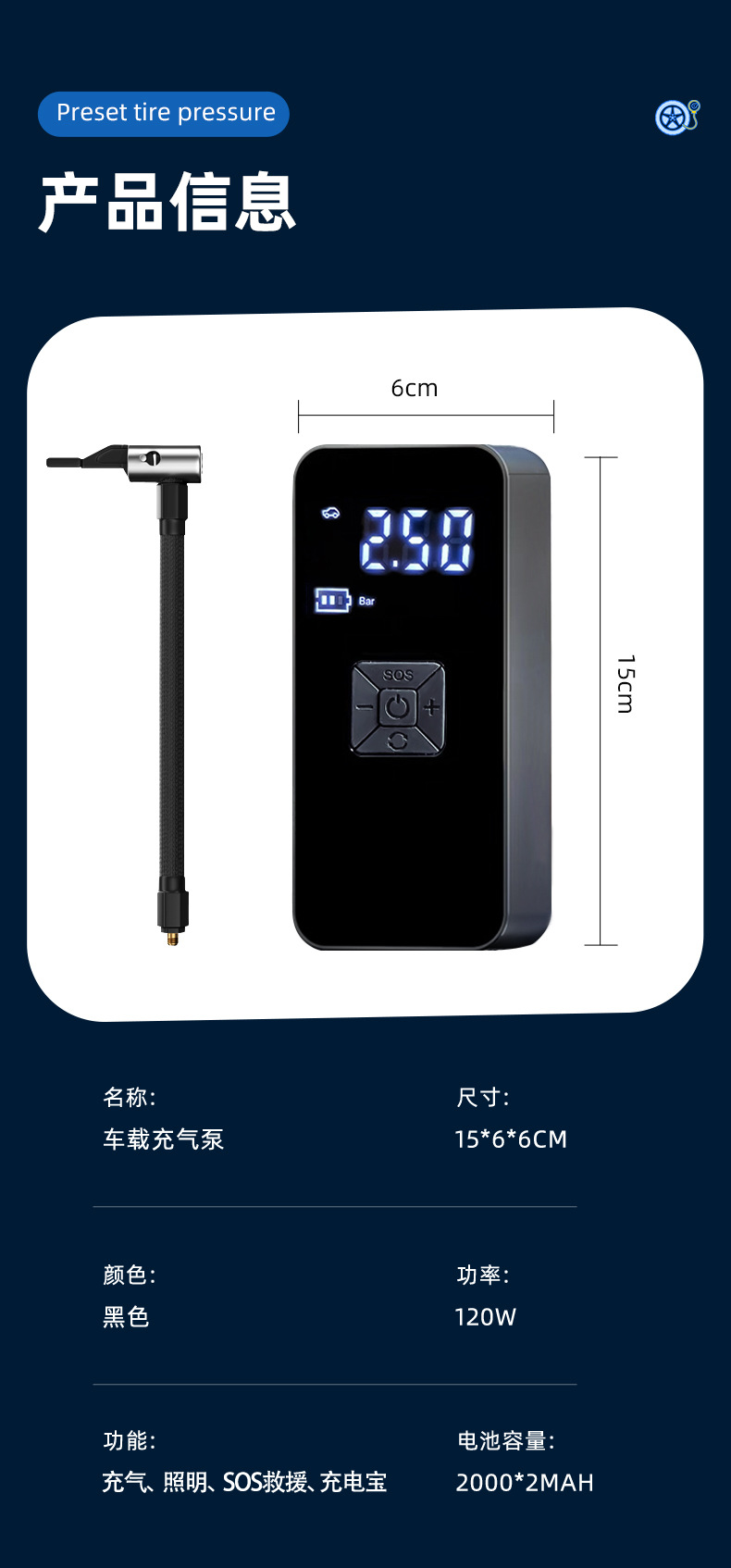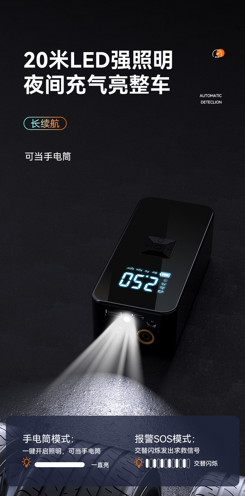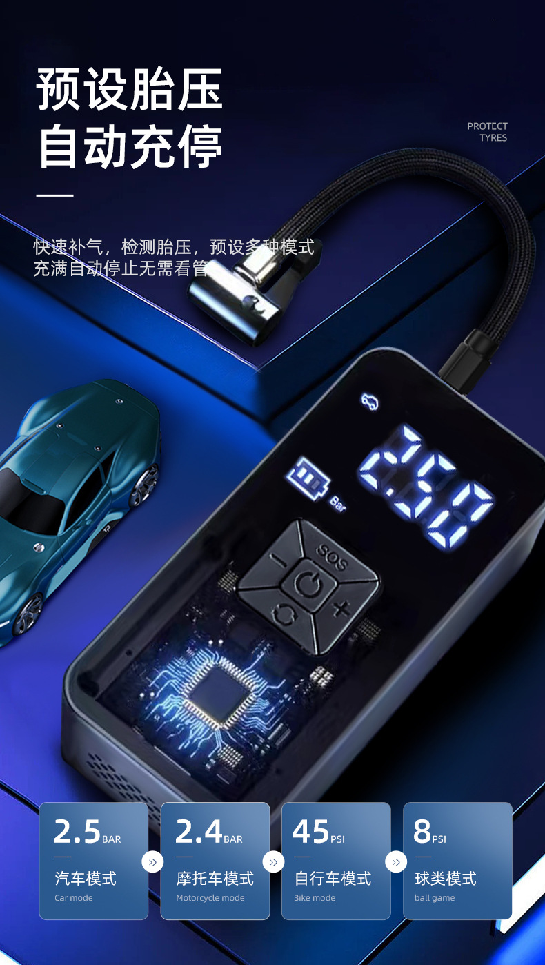 车载充气泵便携式无线电动打气筒多功能应急充电宝迷你轮胎打气泵