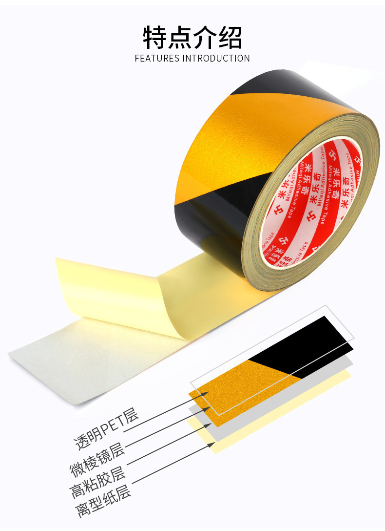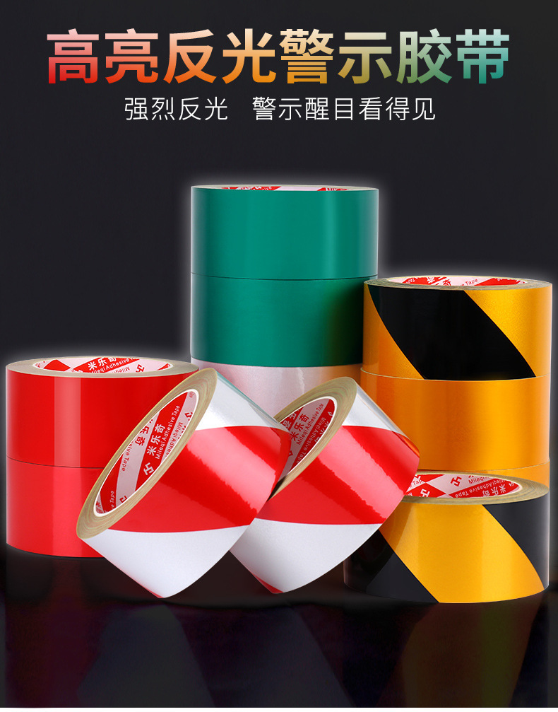黑黄红白反光警示胶带反光膜强力反光贴条地贴纸耐磨安全标识贴条