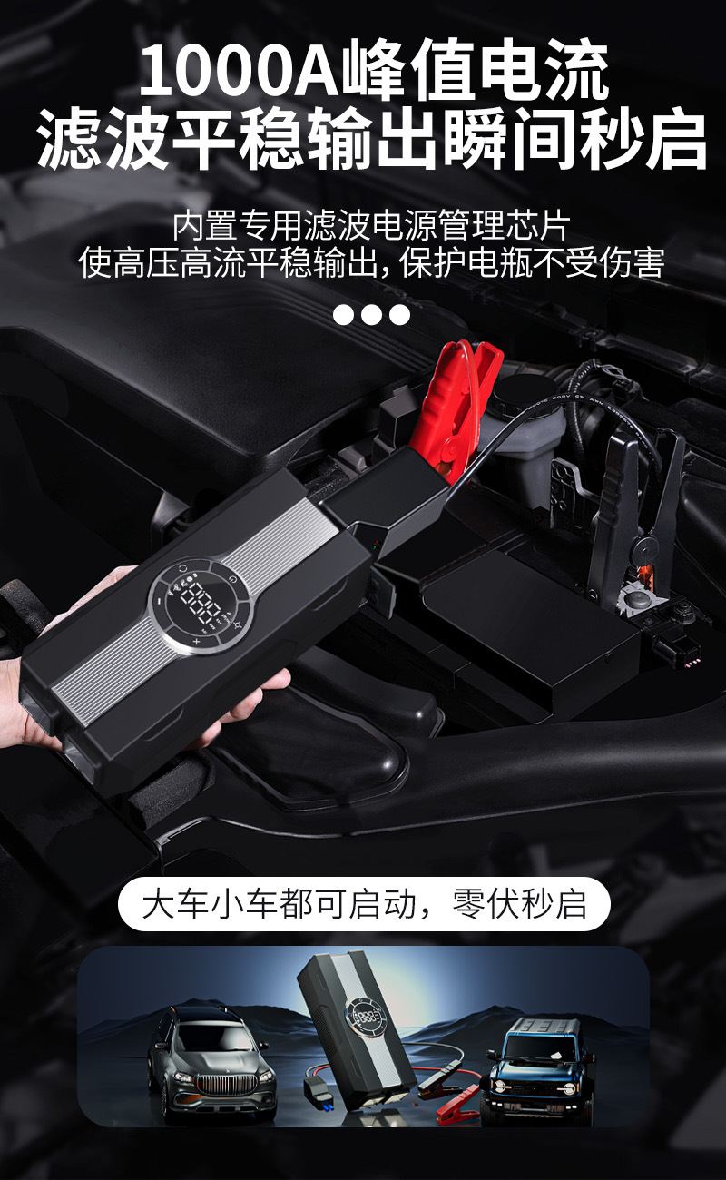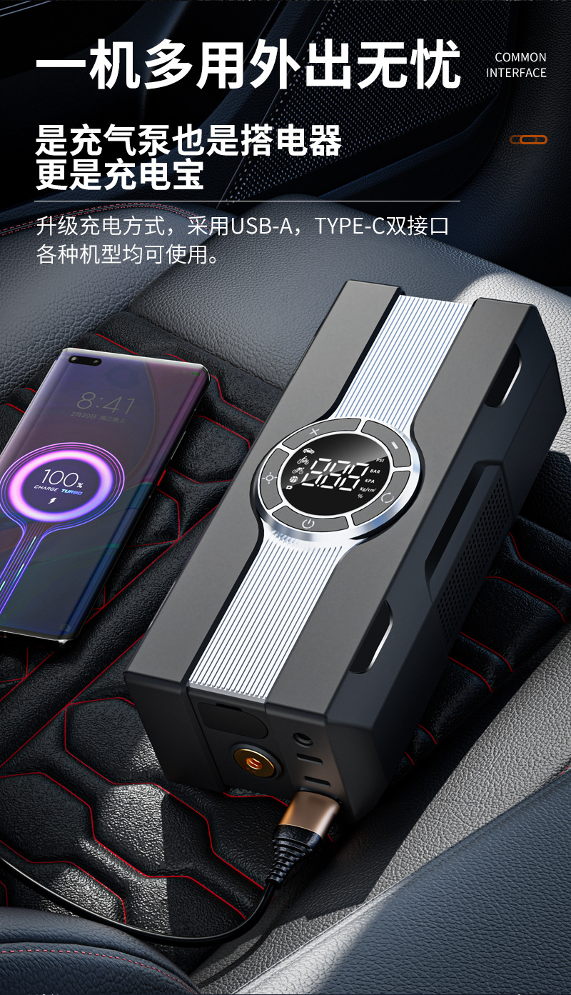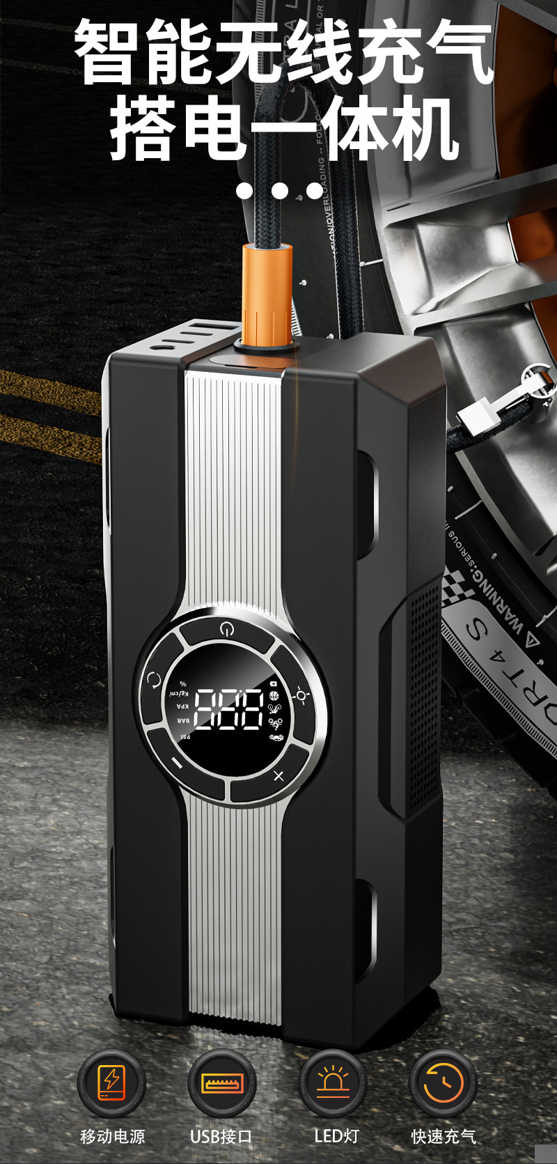 车载充气泵汽车应急启动电源照明充电一体机便携式无线轮胎打气筒