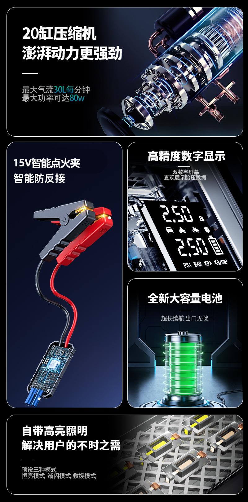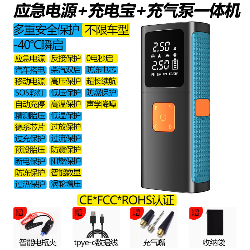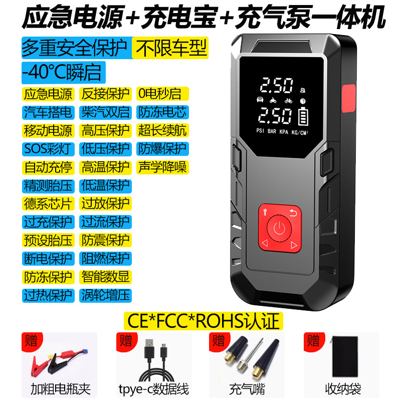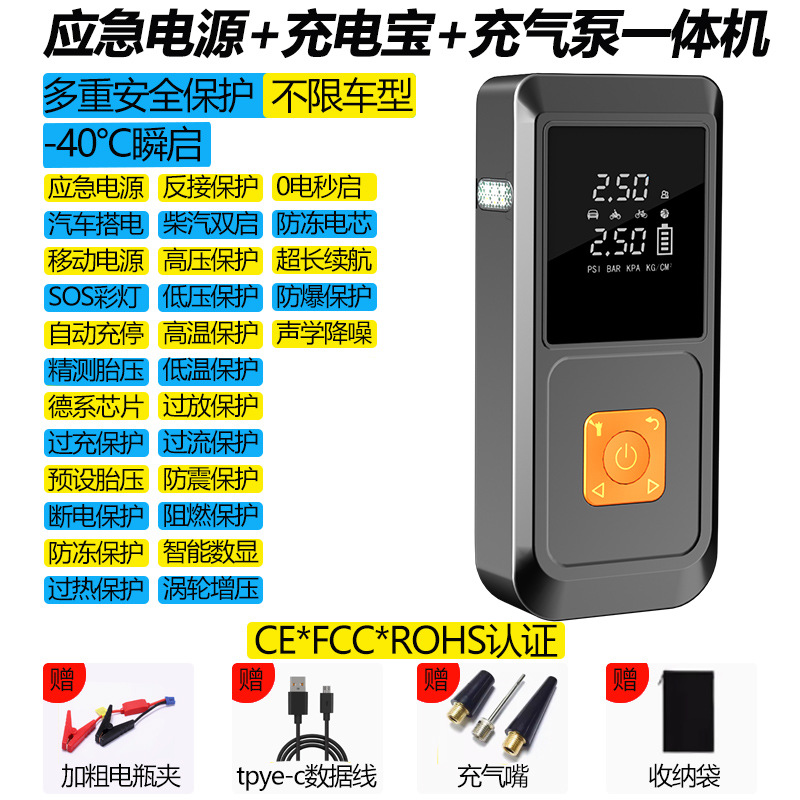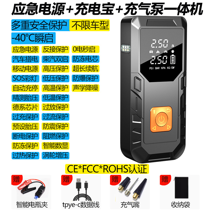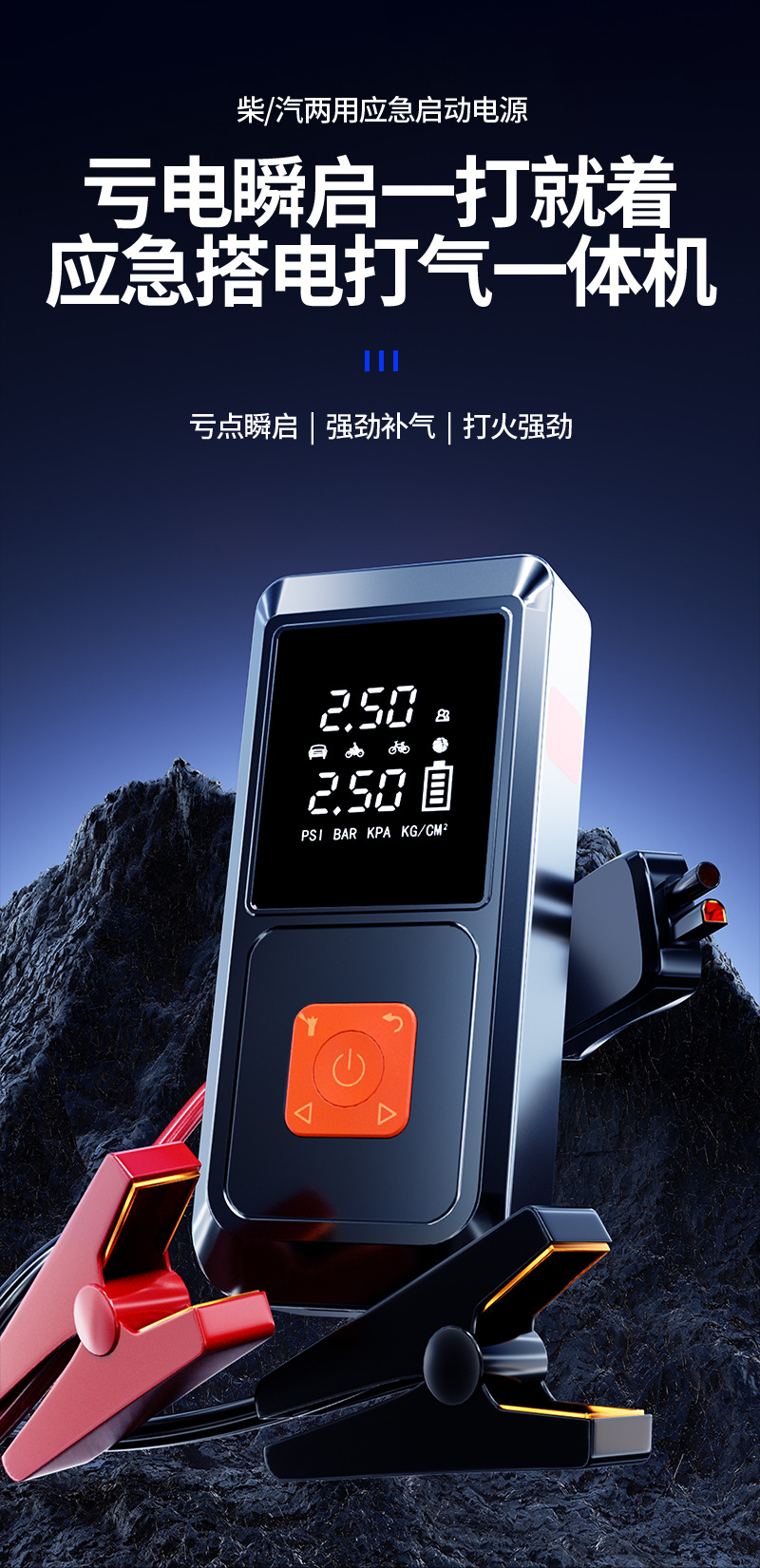 汽车充气泵应急启动电源充气一体机车载打火搭电宝充气搭电一体机