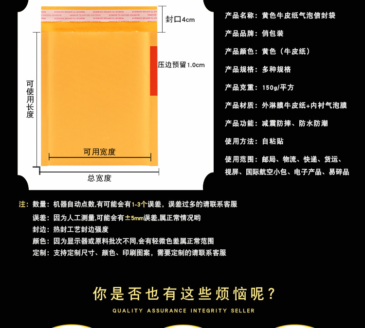复合珠光膜气泡袋信封包装袋自黏袋自粘快递袋加厚自沾泡沫袋