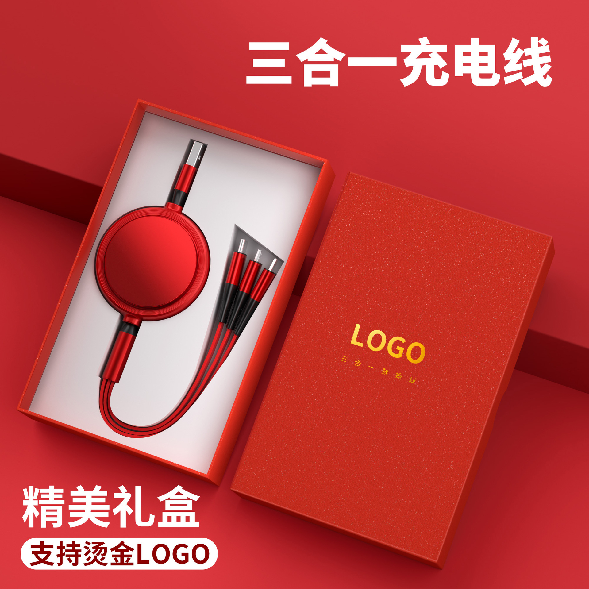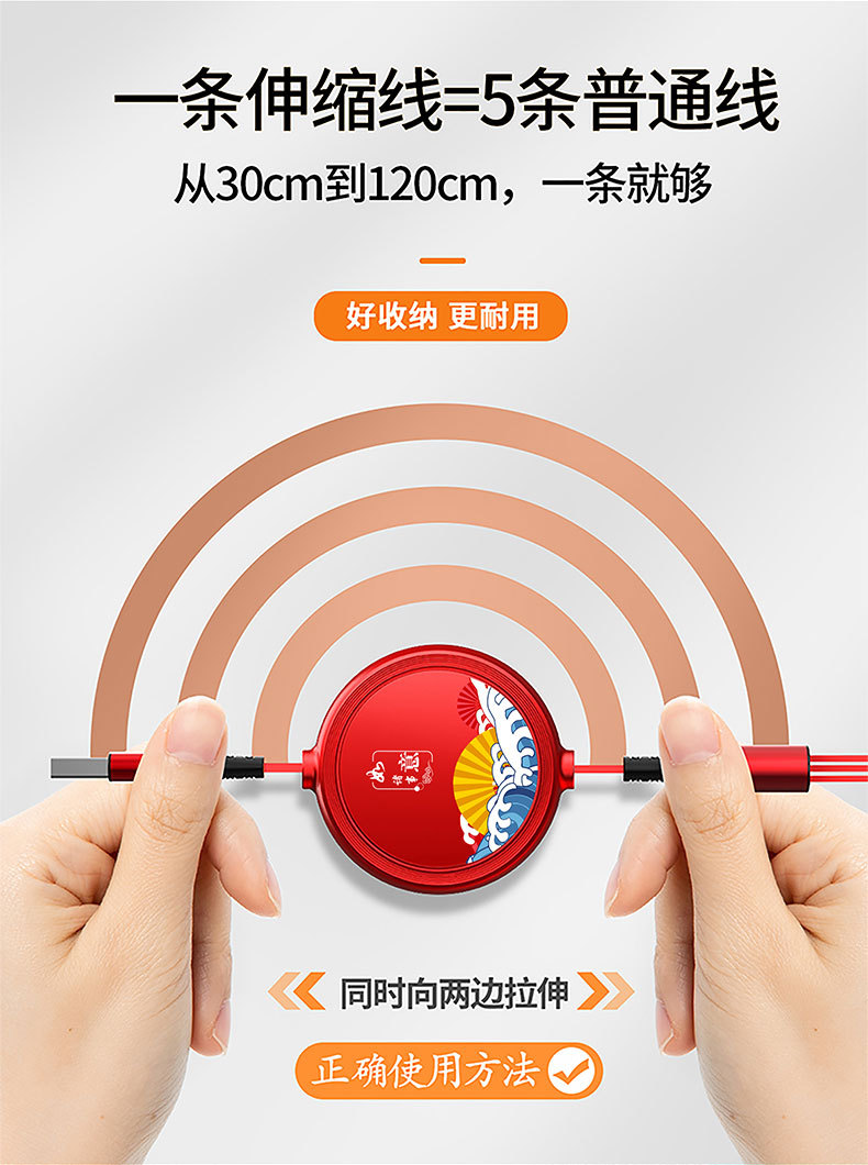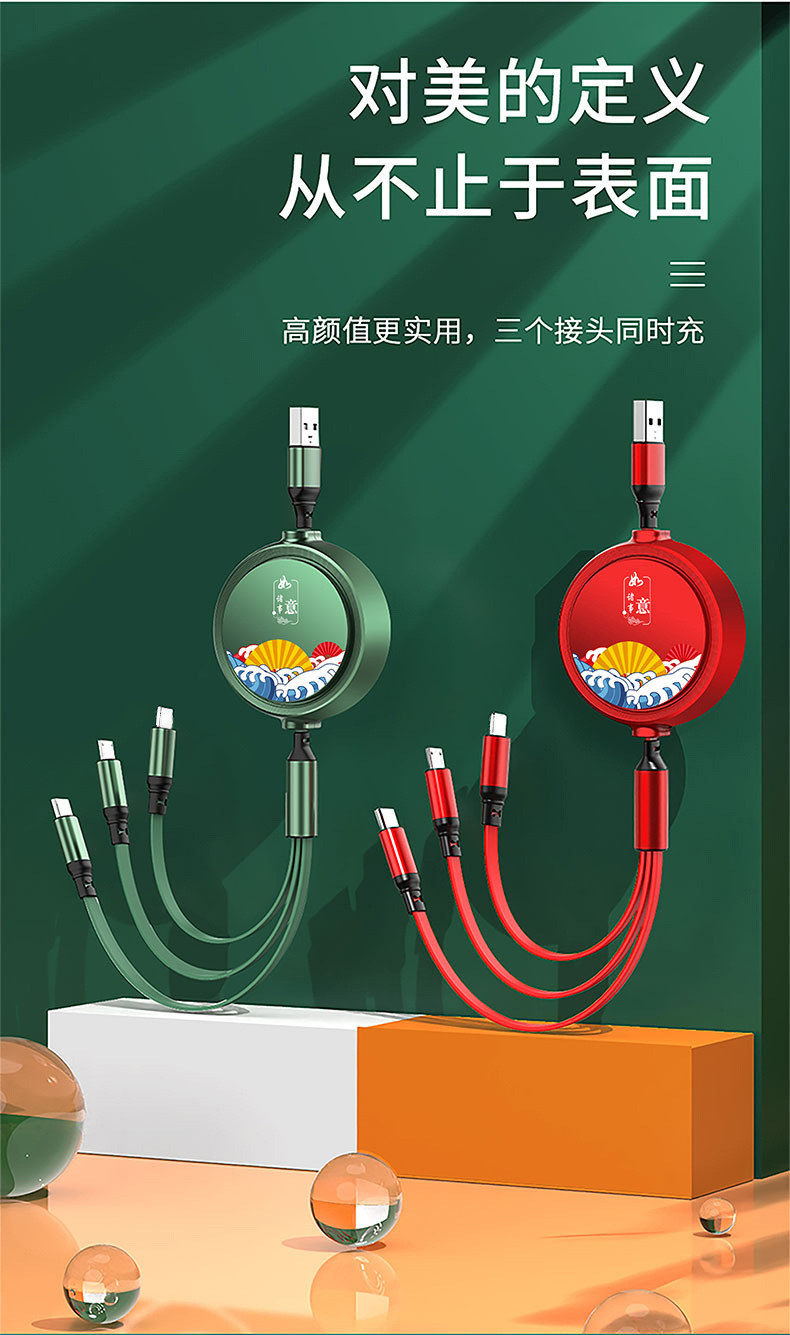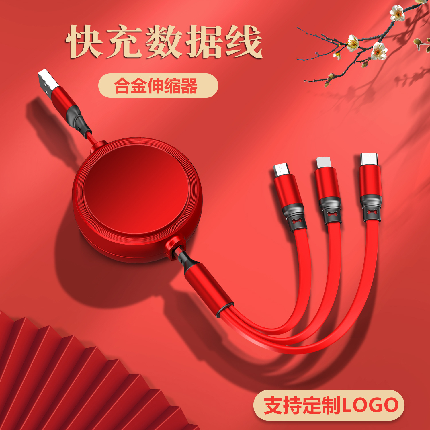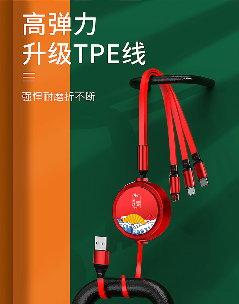 一拖三充电线小礼品66W快充线定印制logo图案开业地推礼物伴手礼