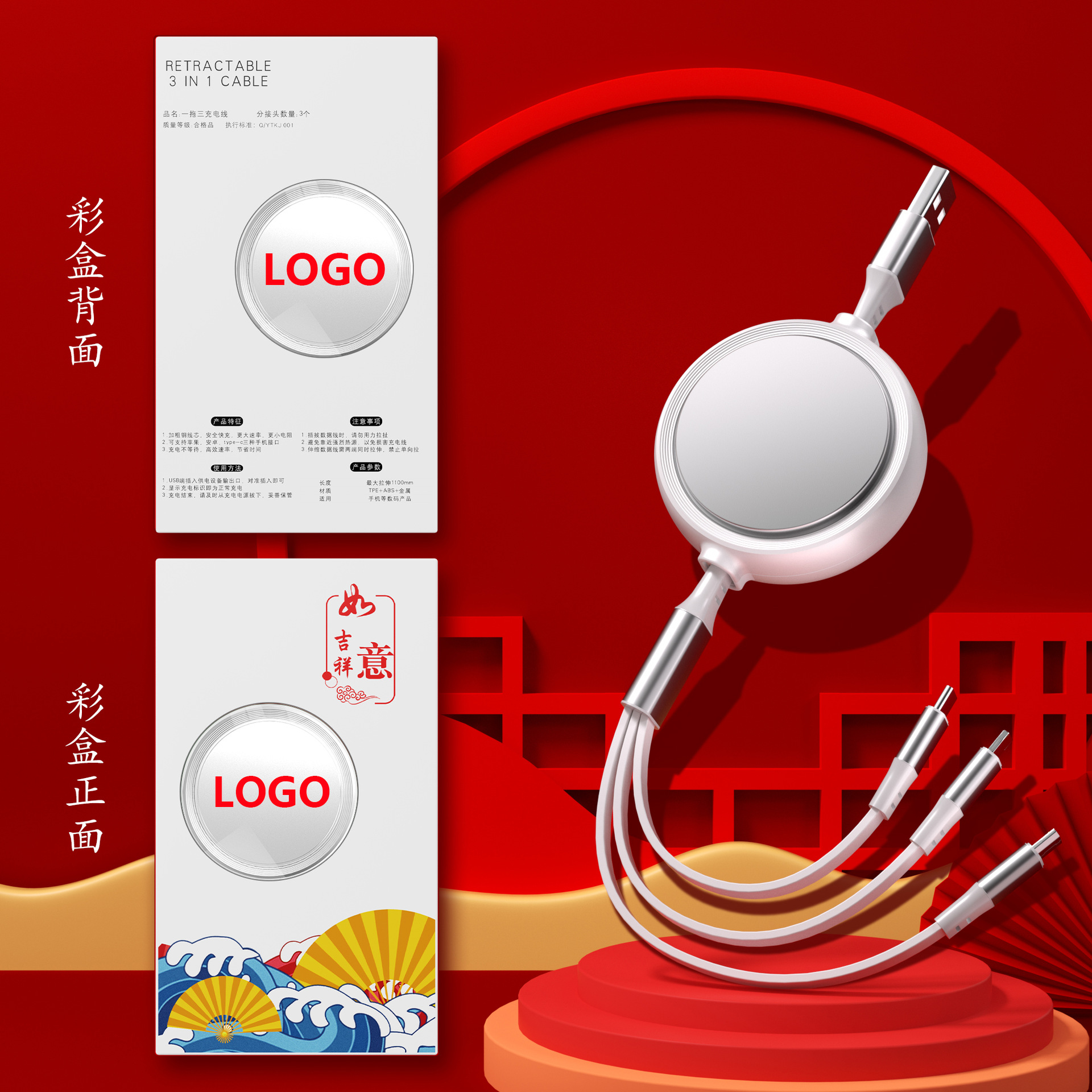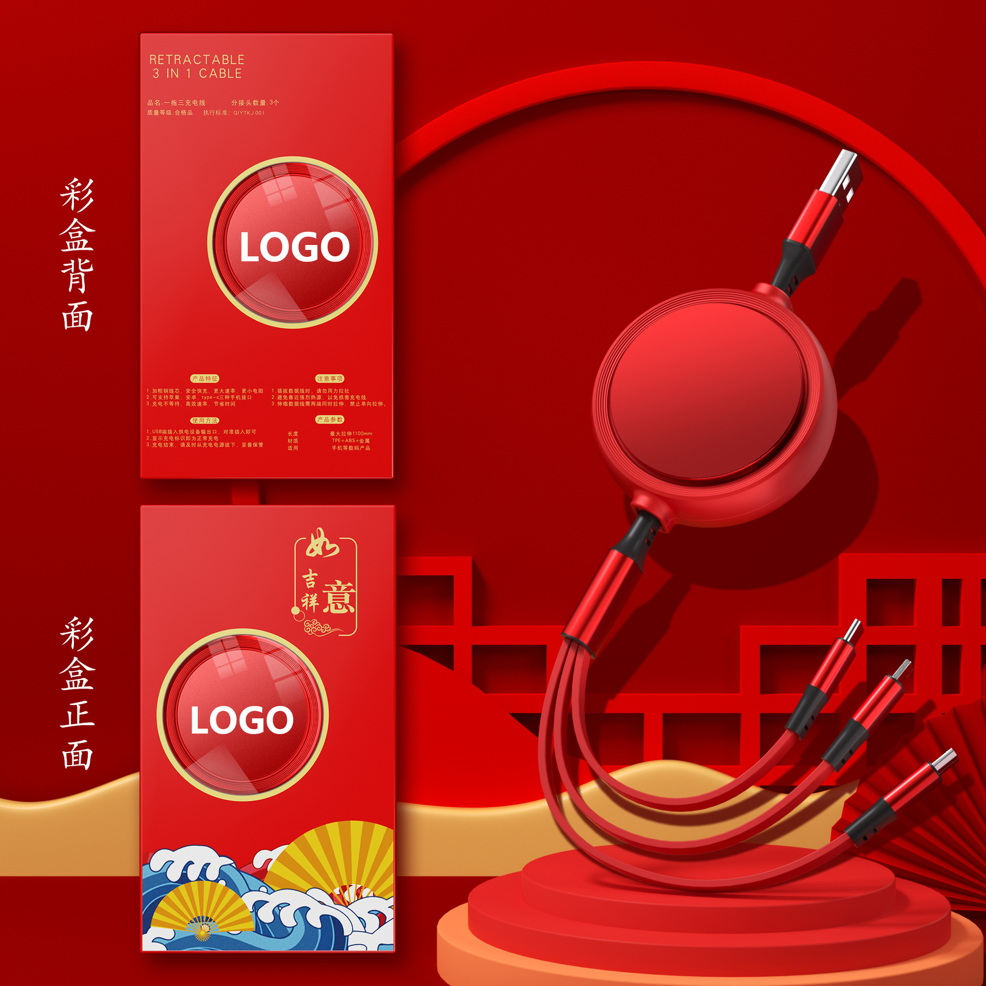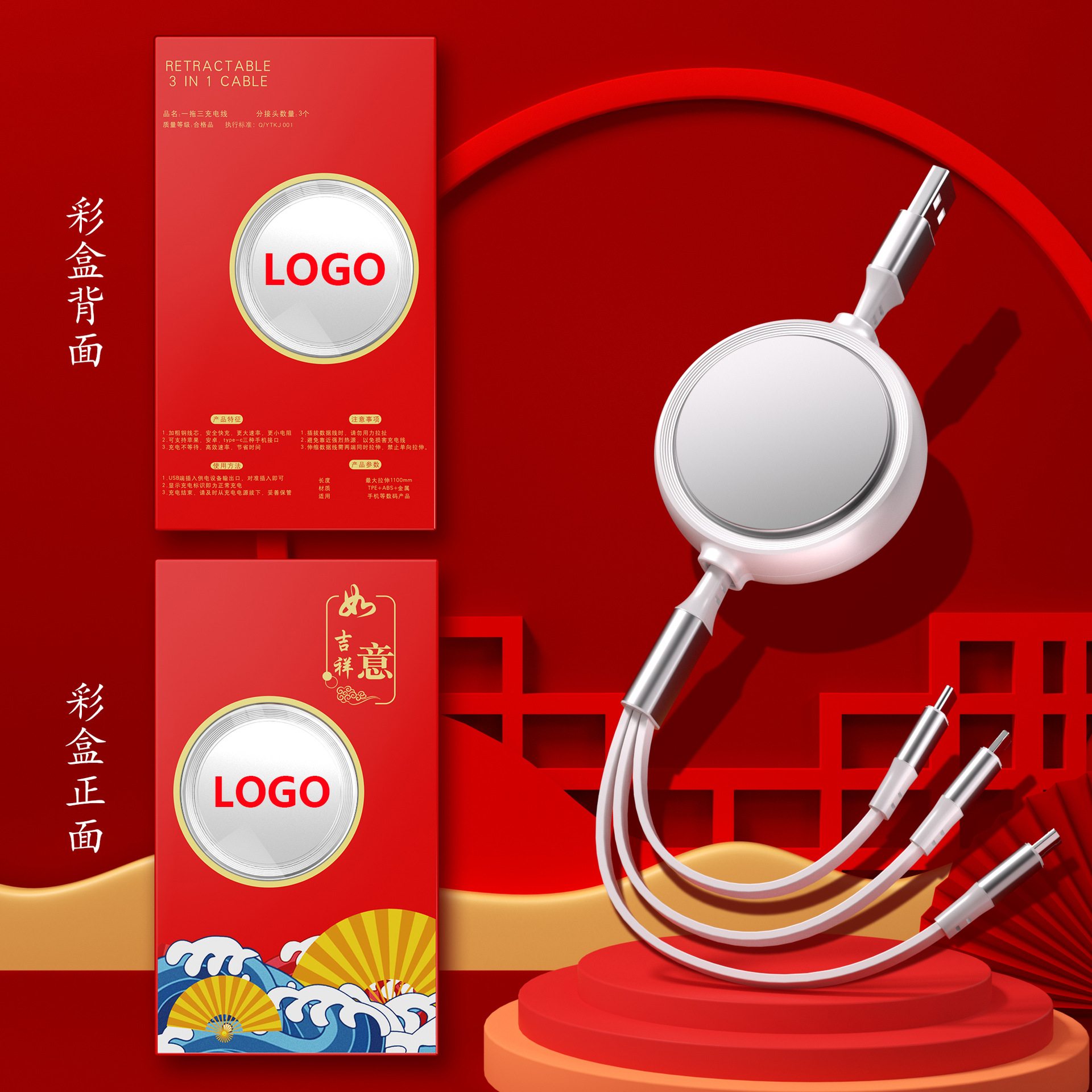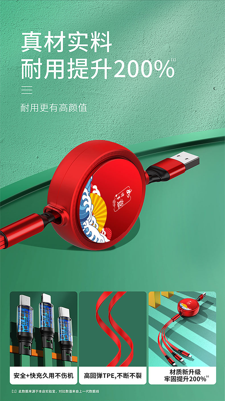 一拖三充电线小礼品66W快充线定印制logo图案开业地推礼物伴手礼