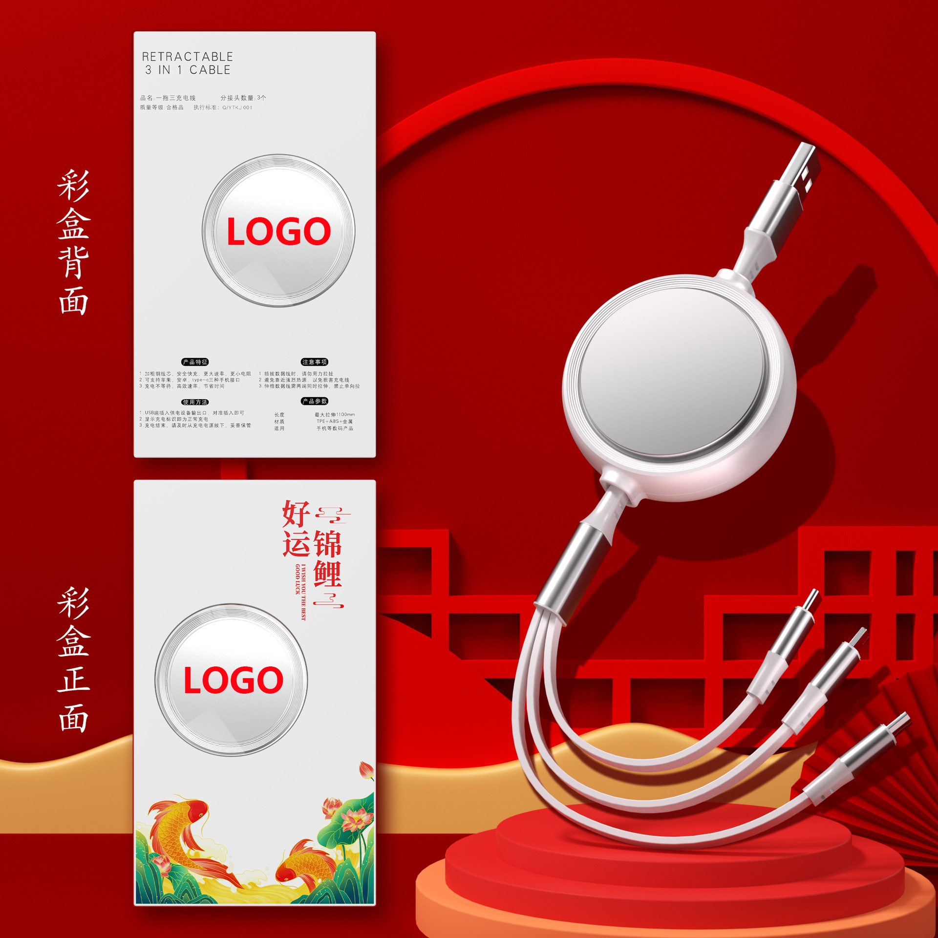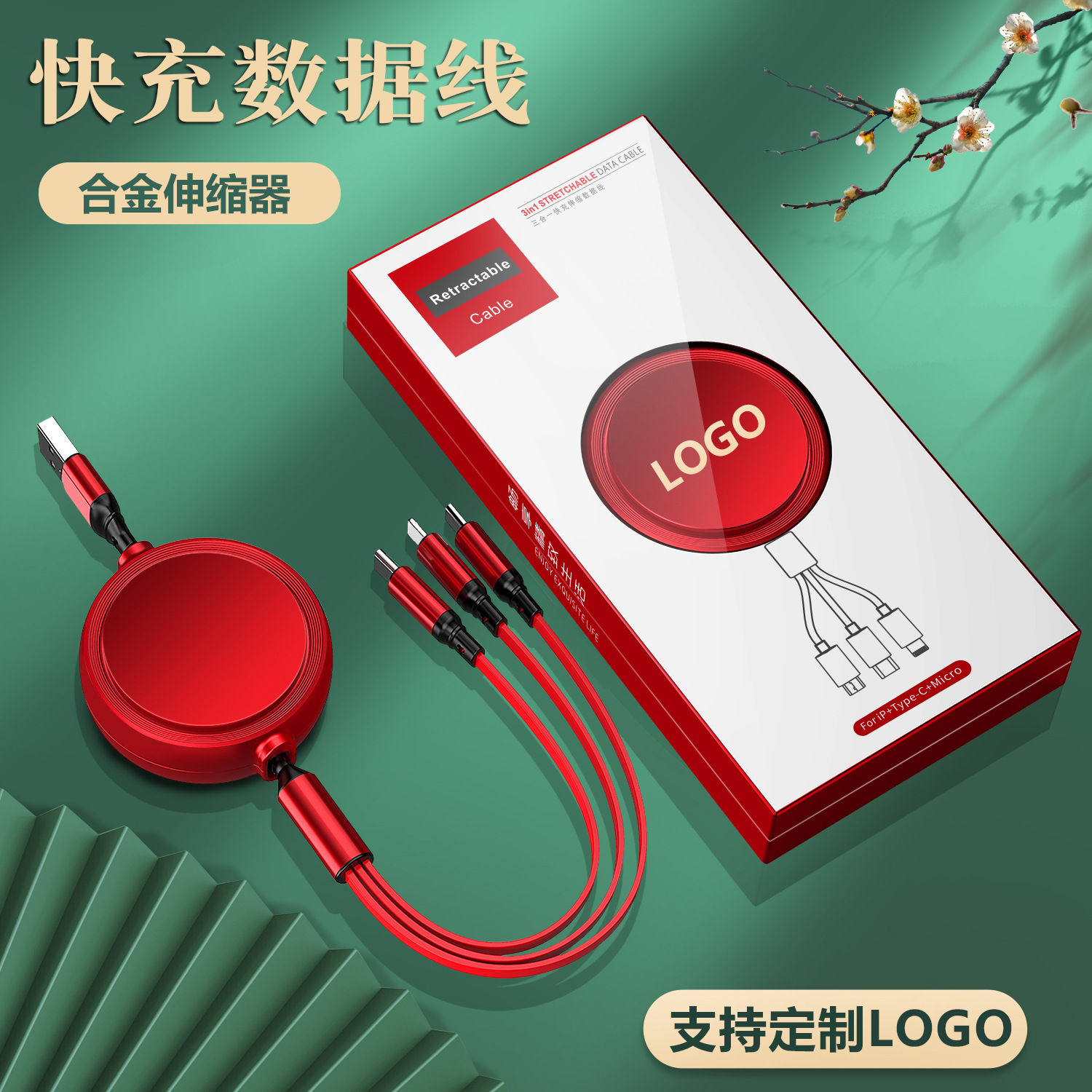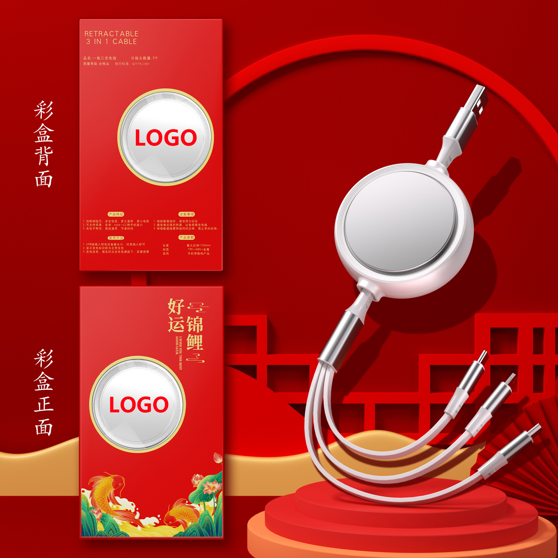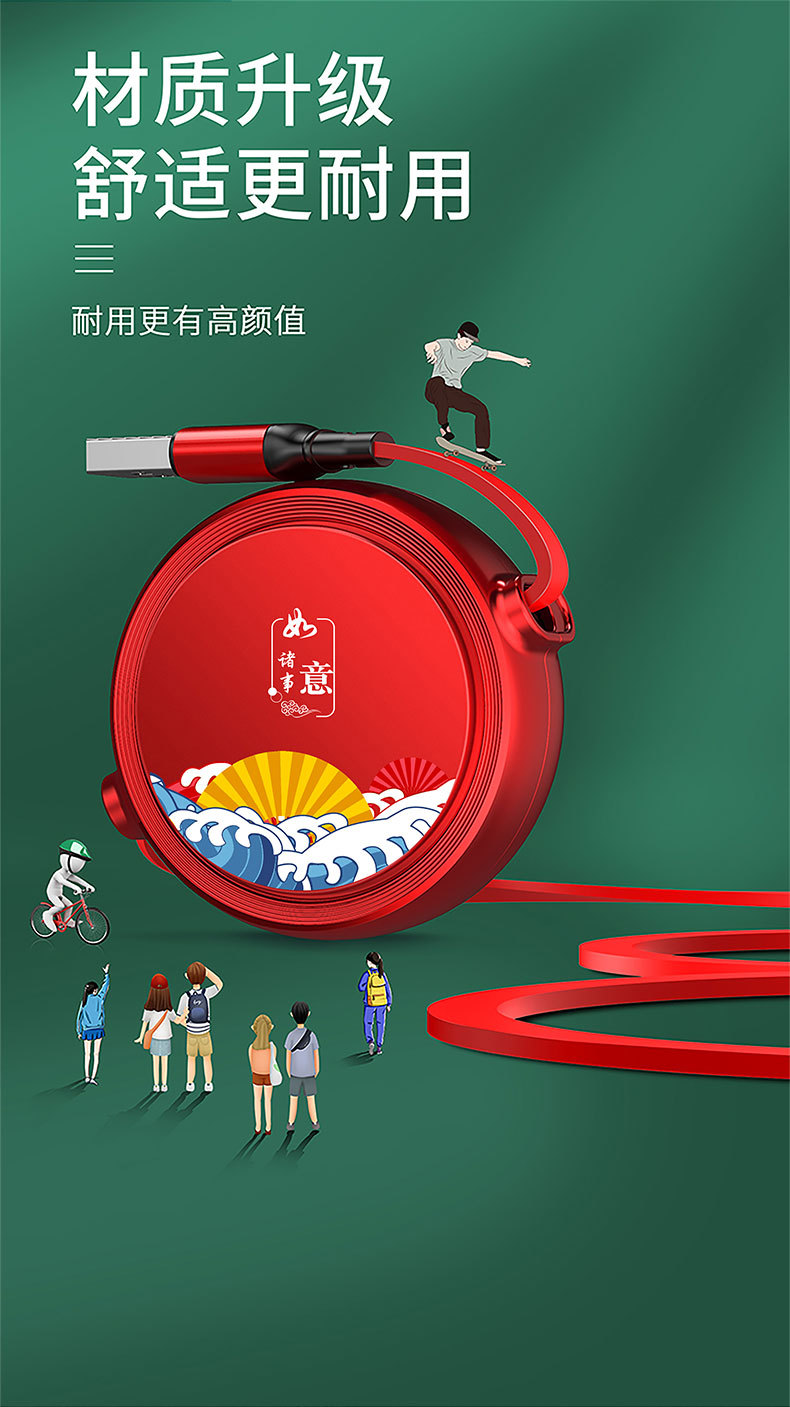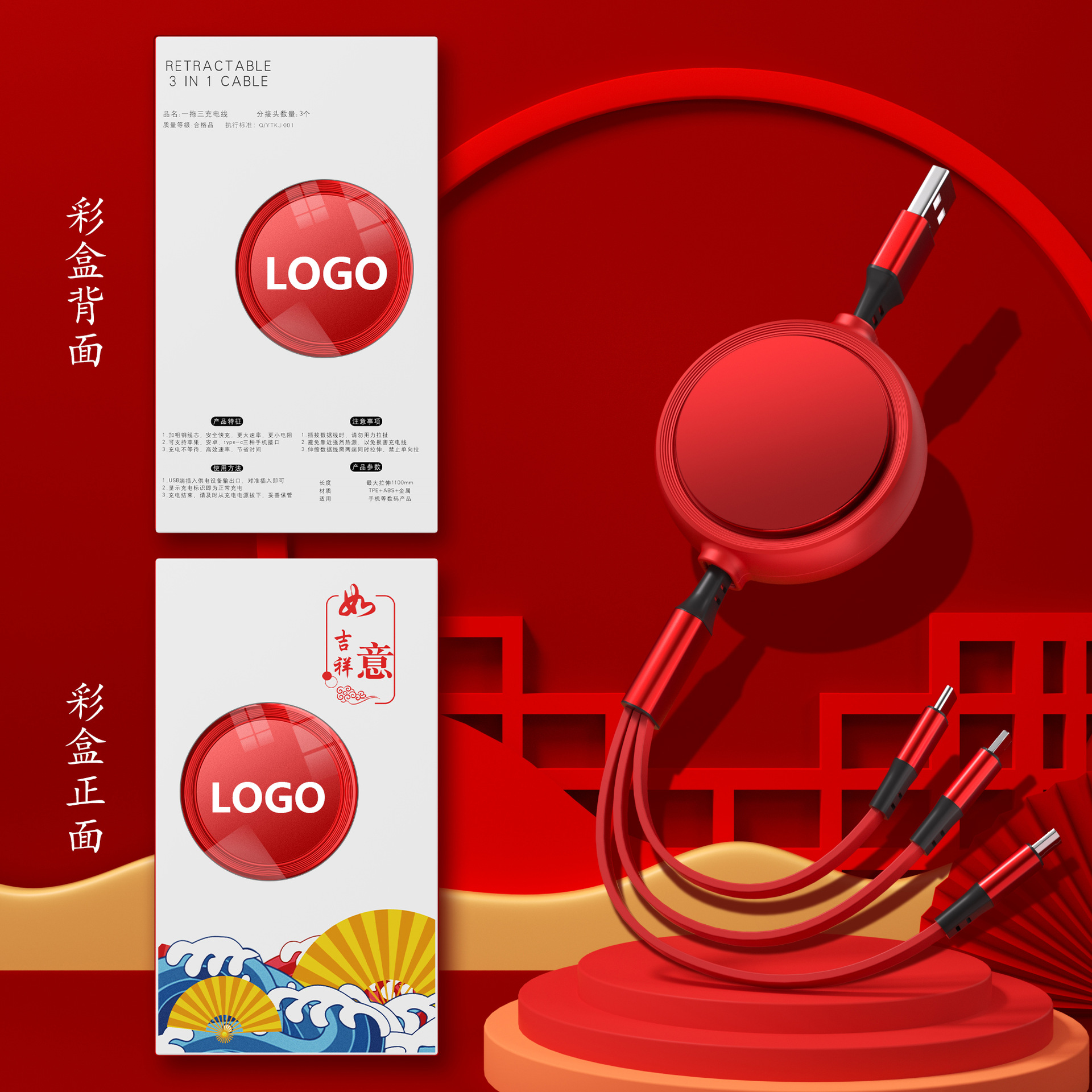 一拖三充电线小礼品66W快充线定印制logo图案开业地推礼物伴手礼