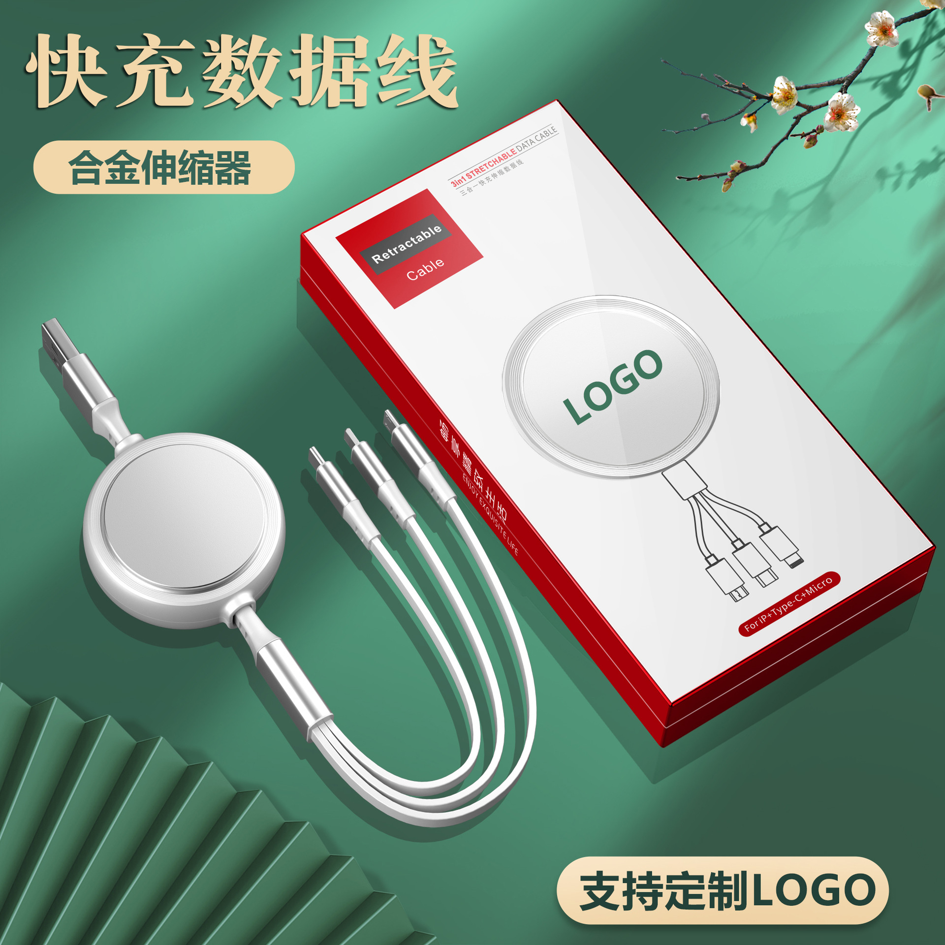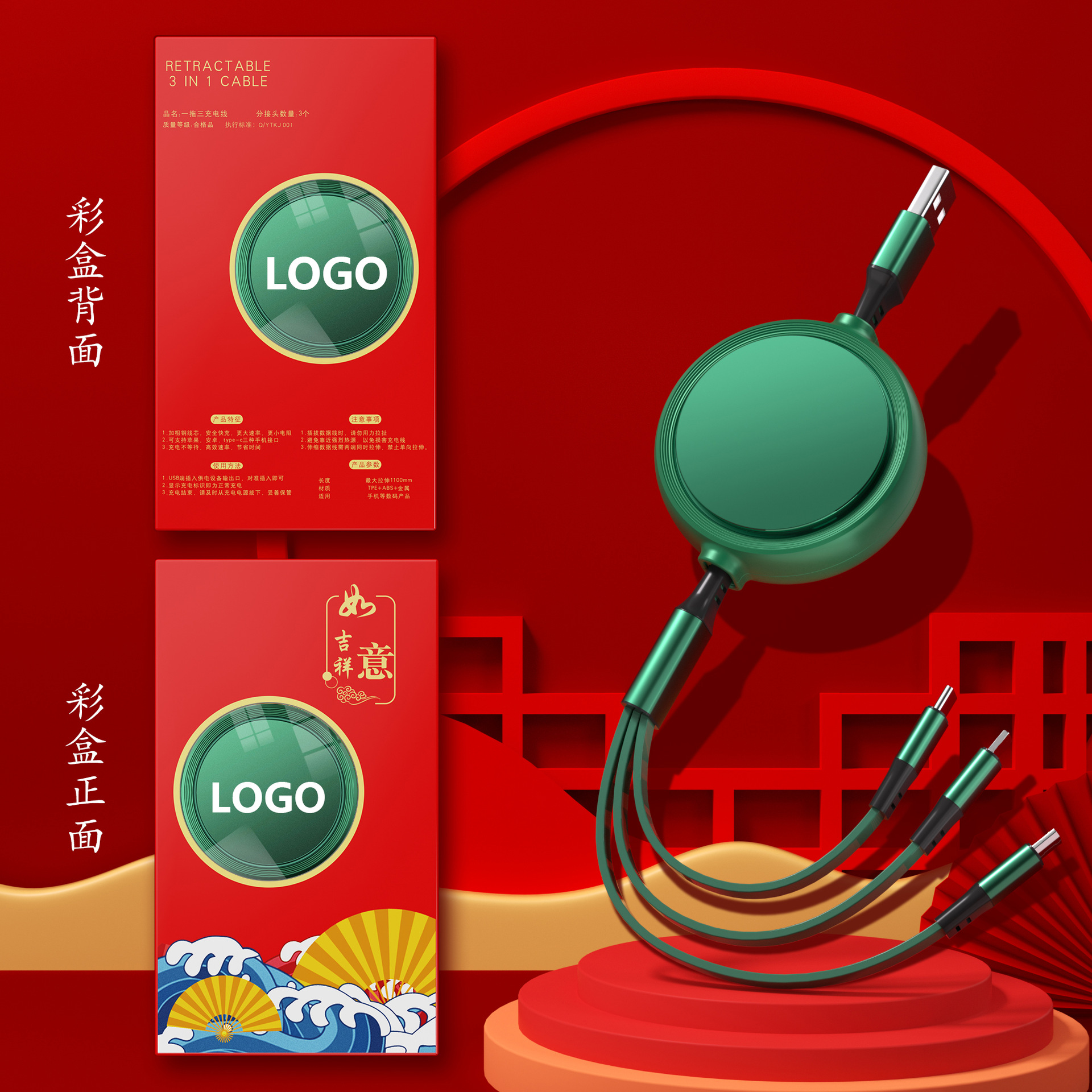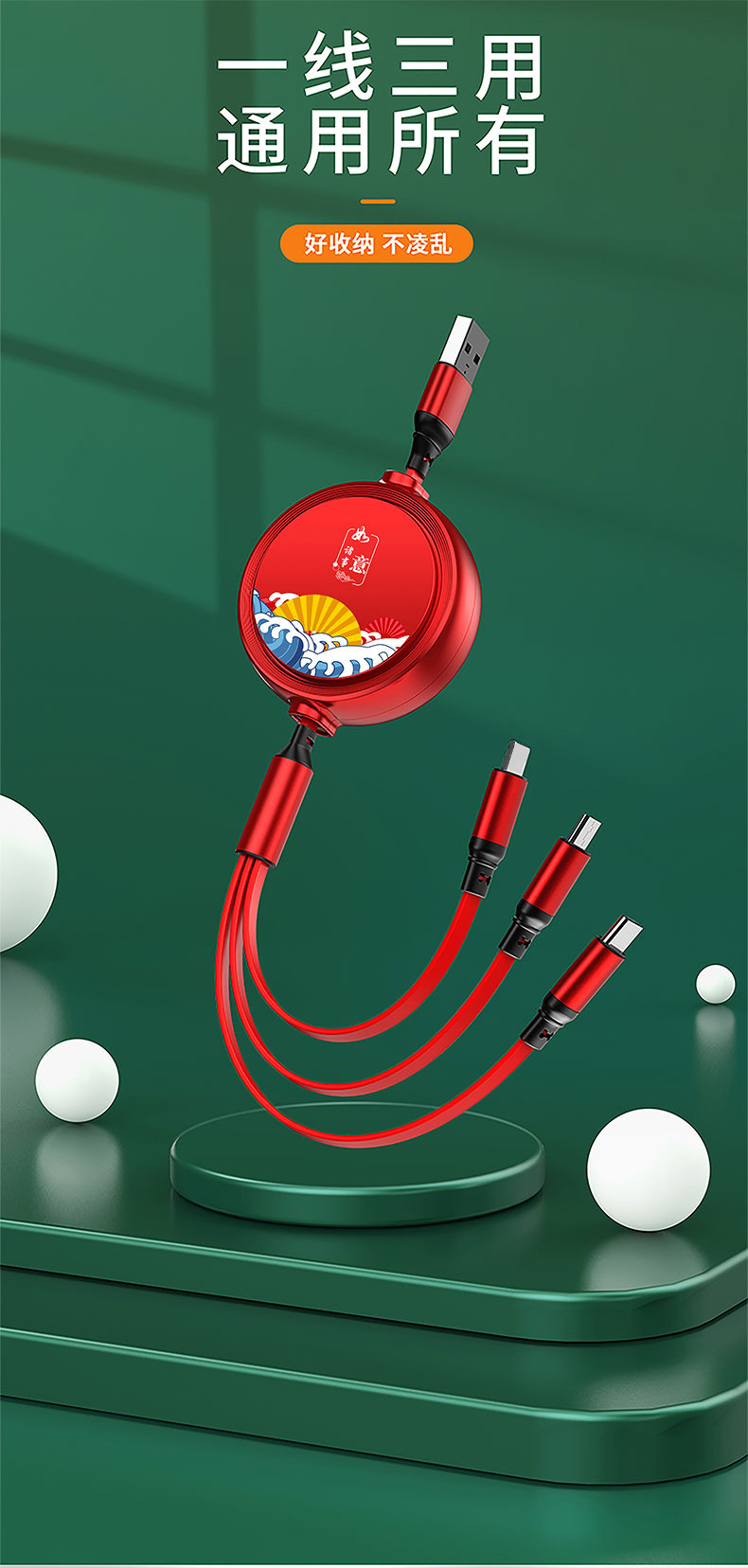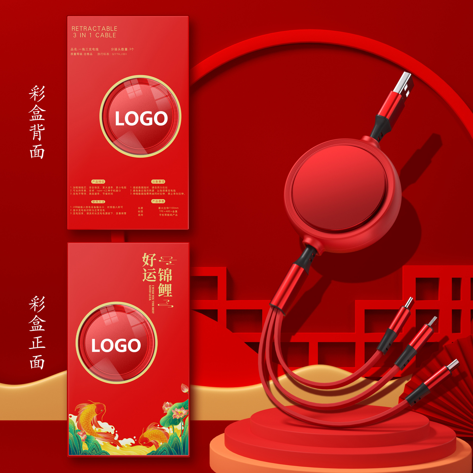 一拖三充电线小礼品66W快充线定印制logo图案开业地推礼物伴手礼