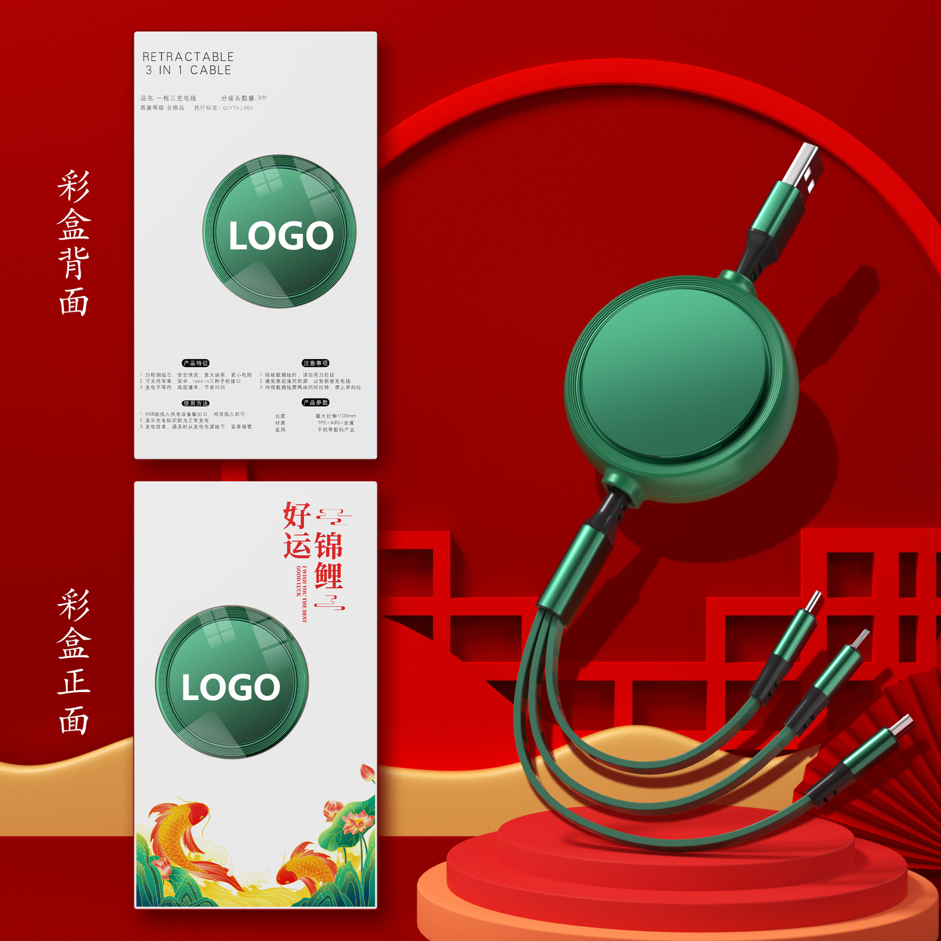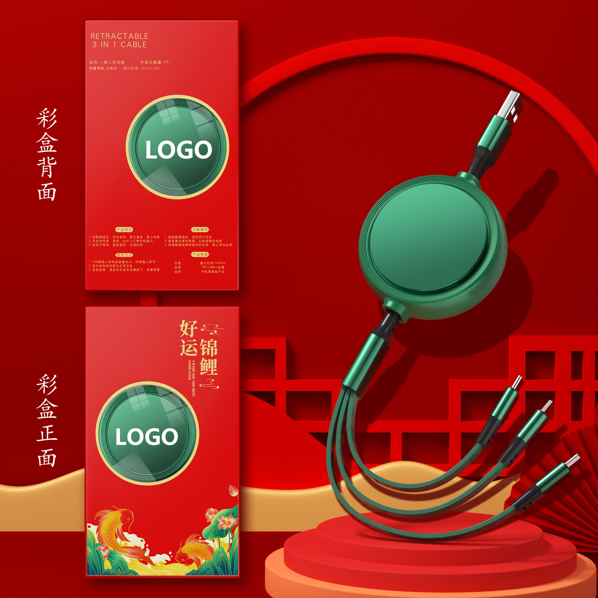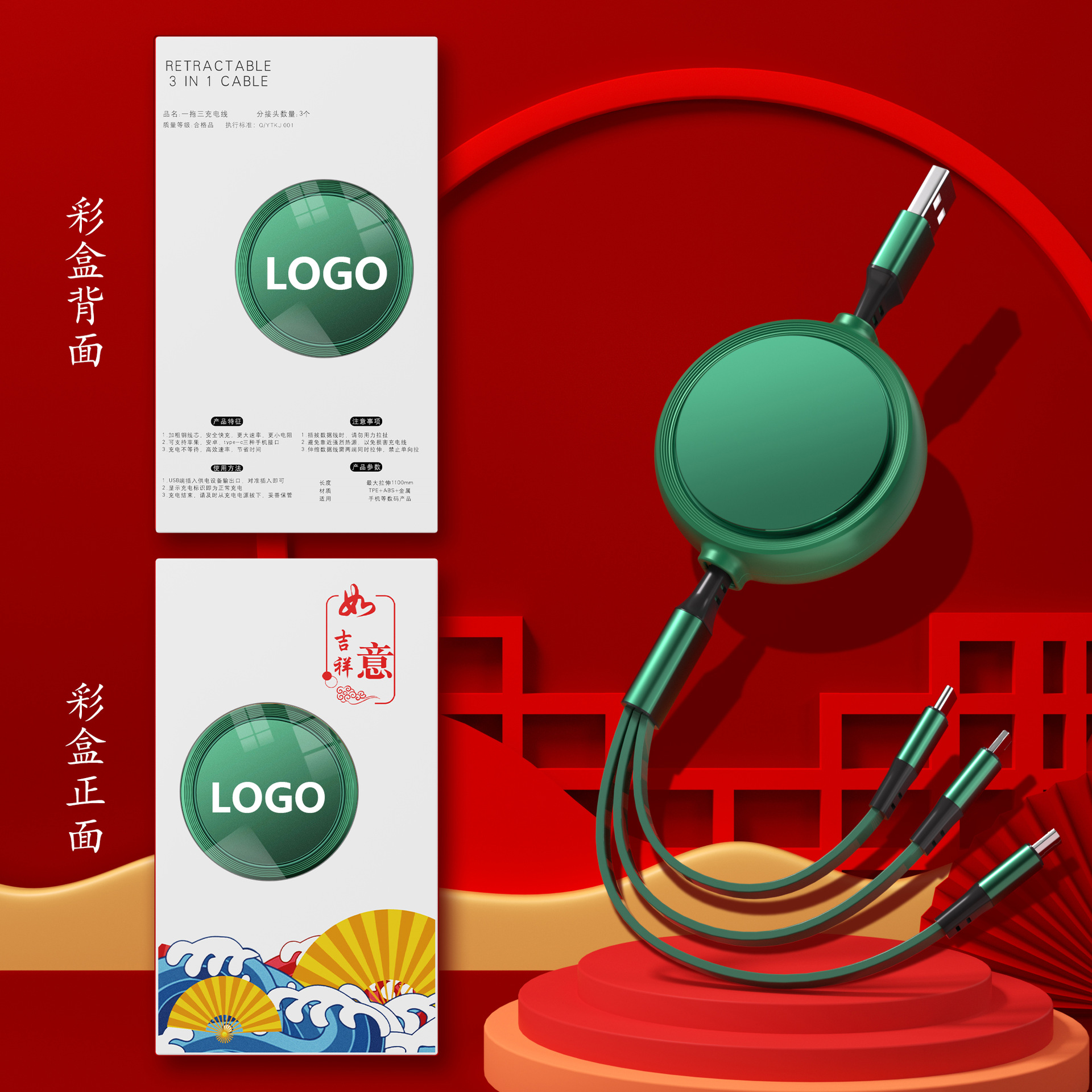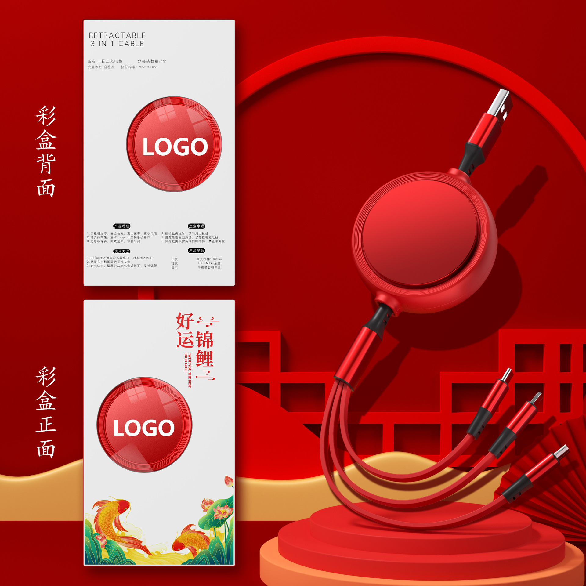 一拖三充电线小礼品66W快充线定印制logo图案开业地推礼物伴手礼