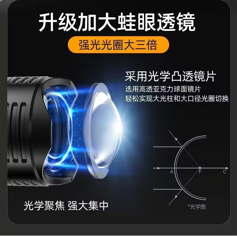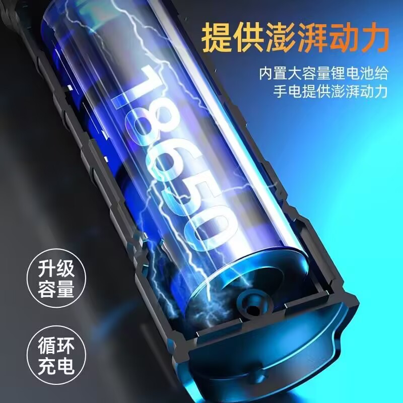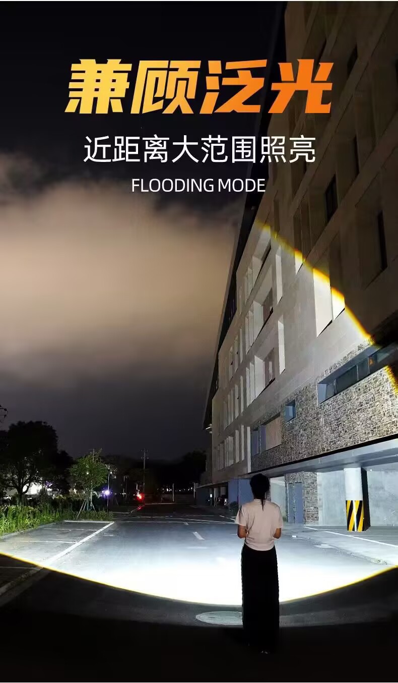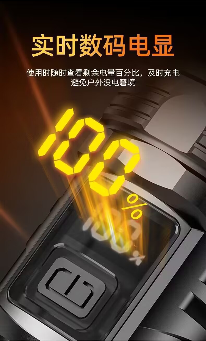 S008伸缩变焦手电筒白激光电量显示LED持久续航超亮照明家用户外