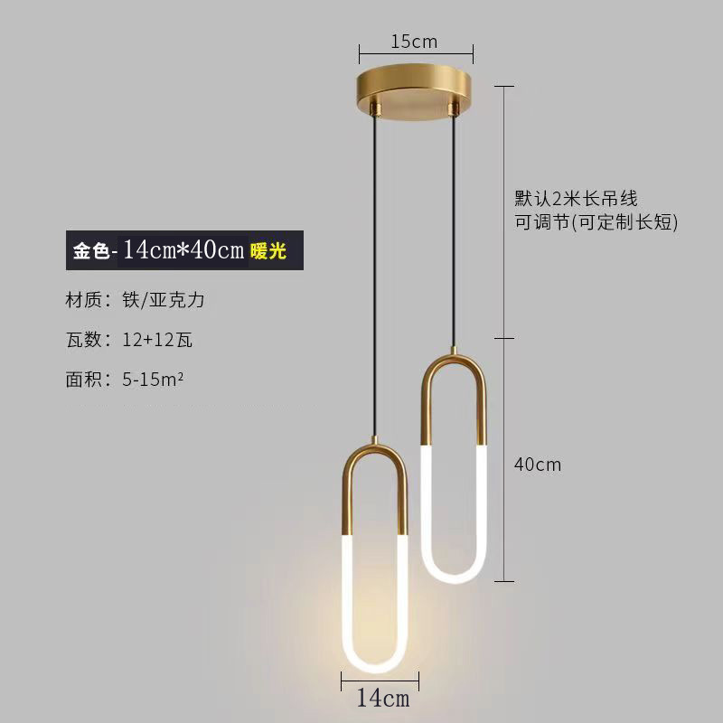 北欧极简U形卧室床头吊灯轻奢网红长线现代简约客厅背景墙吊线灯