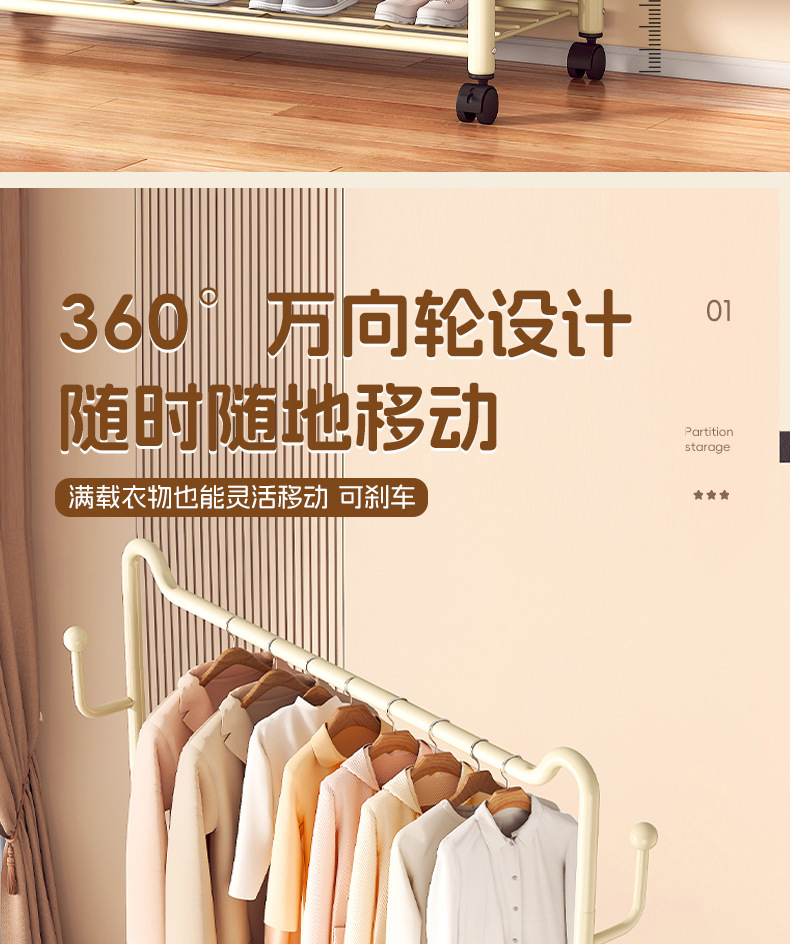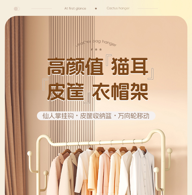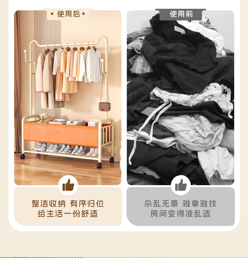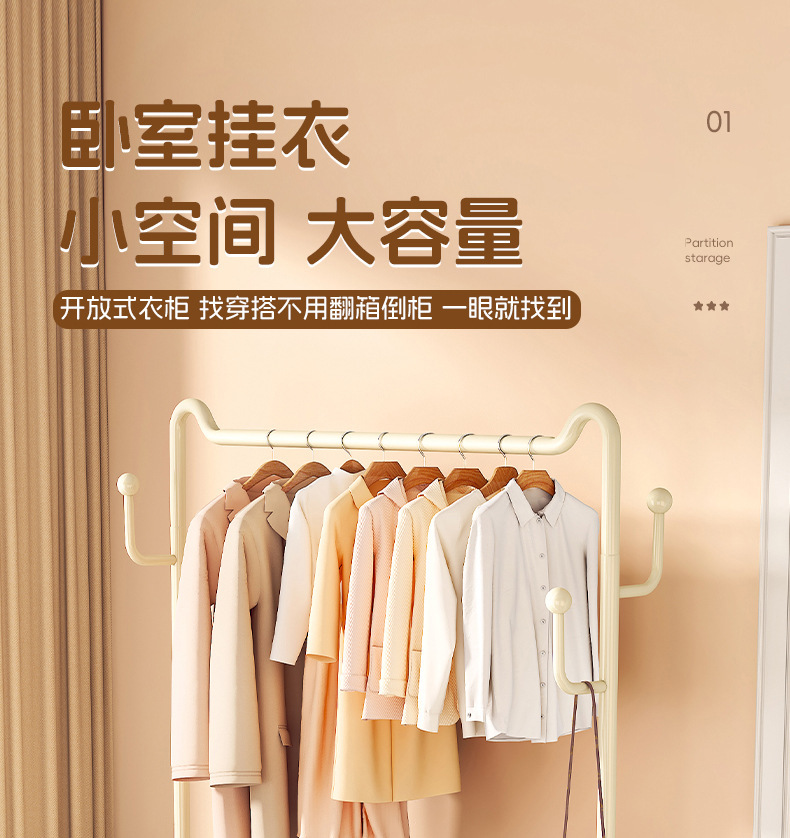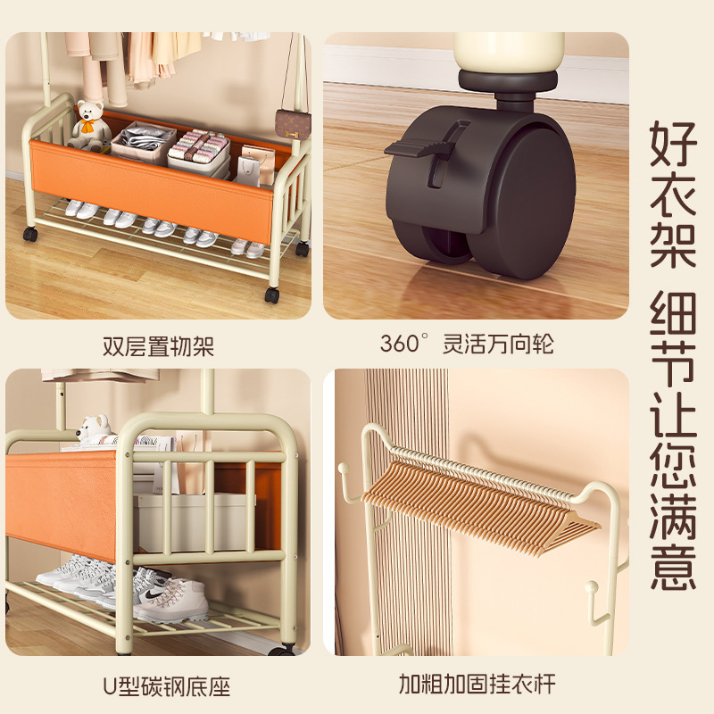 衣架落地卧室挂衣架家用室内移动轻奢晾衣架多功能收纳置物衣帽架